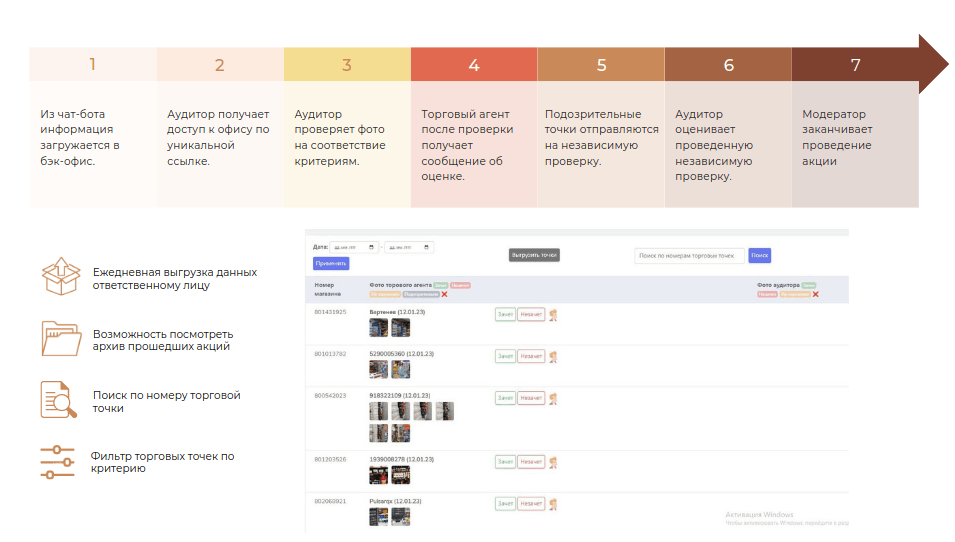 Реализовать техническое решение для мотивации торговых агентов для различных дистрибьюторов с целью оптимизации, структурирования и автоматизации их работы.