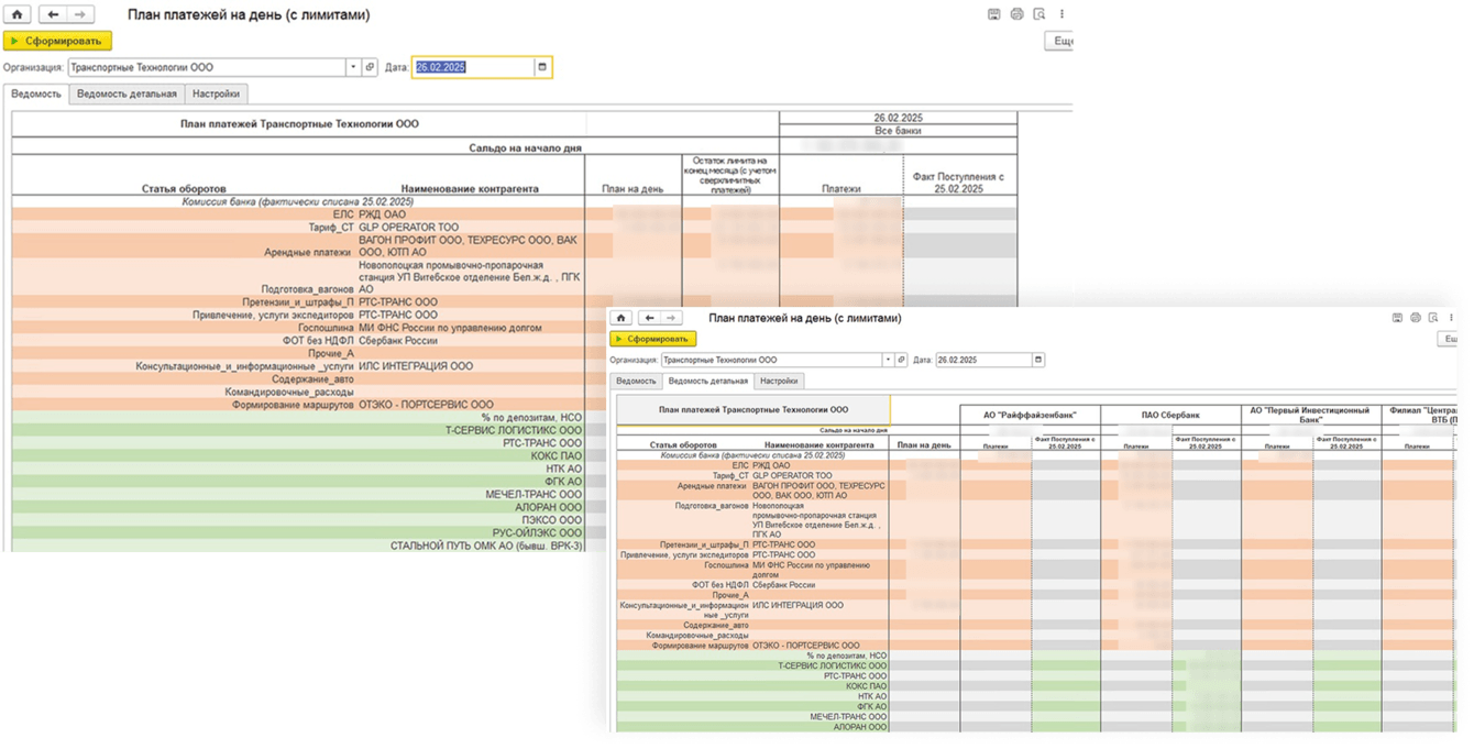 Сделали доработку отчета, позволяющего в разрезе банковских счетов собирать плановые платежи, которые должны проходить по контрагентам в конкретную дату. В отдельной колонке будут указаны пришедшие поступления. Можно онлайн отследить график платежей, например, могут ли сотрудники что-то ещё оплатить благодаря полученным финансовым средствам. Выстроенная цепочка позволит команде избегать кассовых разрывов.
