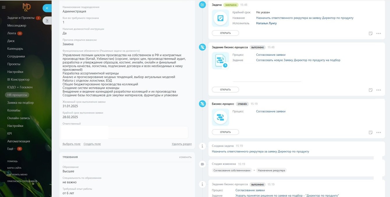 - Ускорение процесса согласования заявок и найма сотрудников.