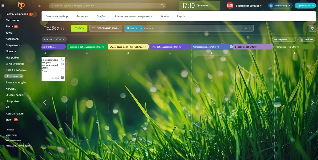 Были созданы воронки согласования заявок на подбор и самого процесса подбора. Теперь Job Offer формируется автоматически в единой форме.