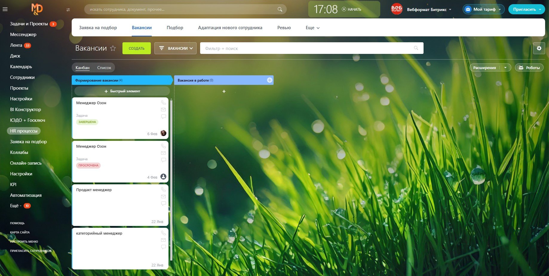 - Все вакансии объединены в единый реестр в Битрикс24.