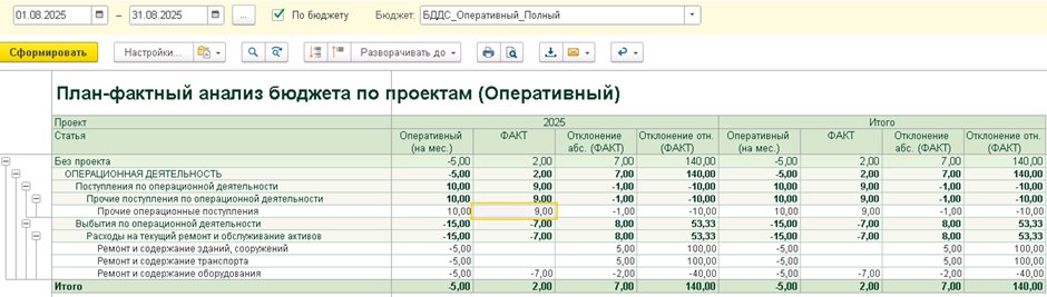 — Повышение прозрачности: руководство получает достоверные данные о движении финансов, бюджете и план-фактных отклонениях в разрезе ЦФО, проектов и направлений деятельности.