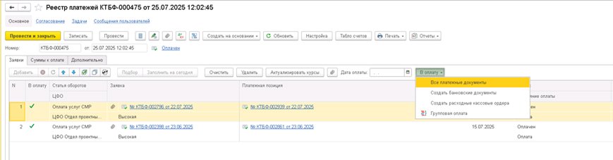 На основании реестра в системе автоматически формируются платёжные поручения.