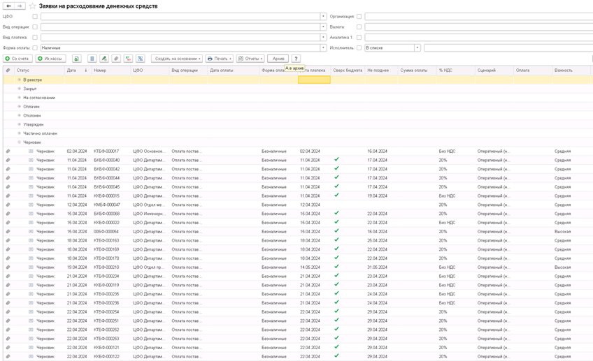 Все заявки на расход средств формируются в системе. После согласования они попадают в реестр платежей.