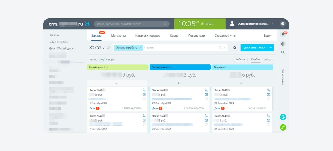 Первоначально для автоматизации предполагалось использовать CRM в облачной версии Битрикс24, настроив ее интеграцию с интернет-магазином. На наше счастье в этот момент появилась редакция «Интернет-магазин + CRM», и не пришлось настраивать интеграцию. Стоимость перехода с существующей редакции Бизнес оказалось примерно в 4 раза дешевле, чем годовая стоимость облачной версии, и это не считая затрат на интеграцию. Вся информация о заказах и покупателях, экспортировалась в CRM, при этом на переходный период остались все прежние возможности для обработки заказов в административной части.