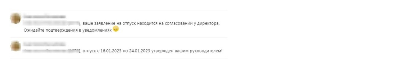 А если руководитель утвердил отпуск, то сотруднику приходят уведомления: