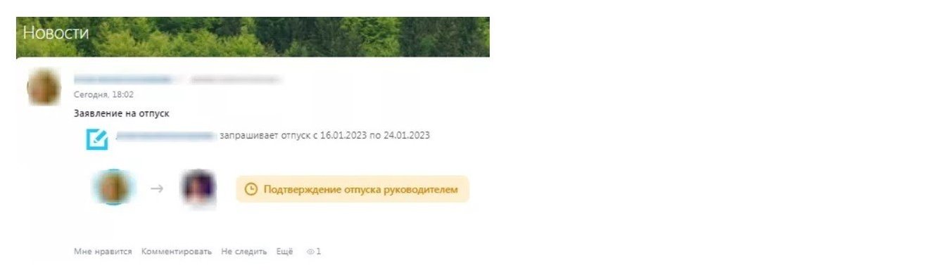 1. Разместили процесс согласования отпуска в ленте новостей, куда у всех сотрудников есть доступ.