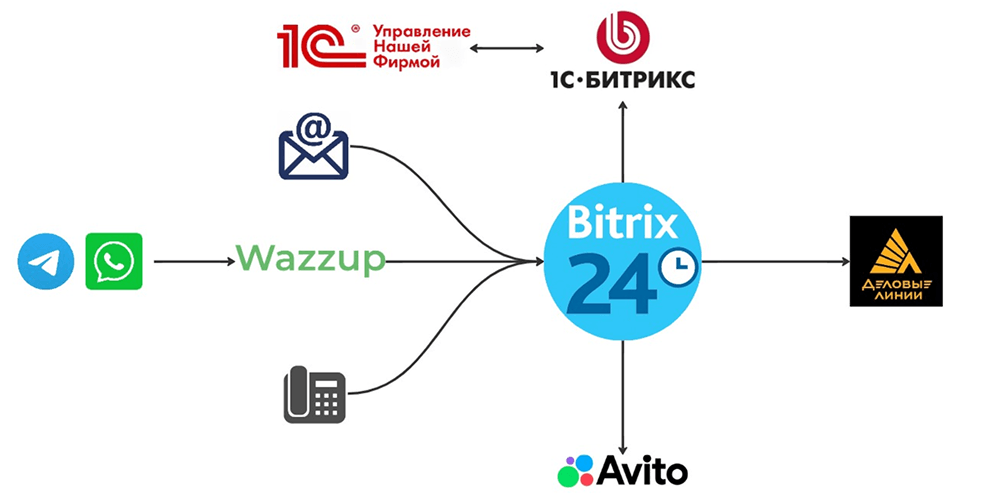 1. Подключены основные каналы получения обращений: формы с сайта, телефония, месседжеры и аккаунт Avito.