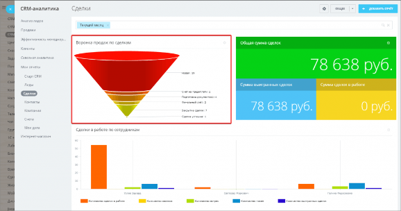 Так как цикл принятия решения может быть длинным, важно не терять контакт с клиентом, отслеживать “узкие места” воронки, контролировать работу менеджеров. Строительным компаниям в CRM с этим помогут отчеты по продажам в разных разрезах: