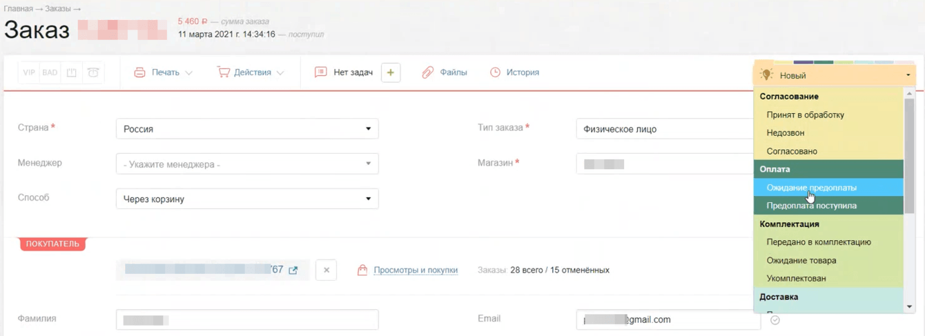 Обработка заказов интернет-магазина, как и у большинства компаний, где нет CRM, выглядела следующим образом.