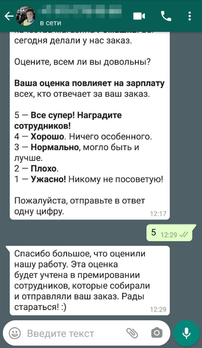 В тех случаях, когда клиент все-таки дал обратную связь, не все магазины реагируют на его отзыв. В нашей практике мы сталкивались со случаями, когда благодарность за обратную связь приходила спустя неделю.