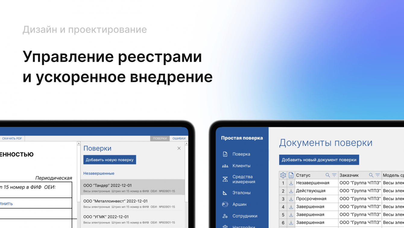 В начале проекта по разработке системы составления документов поверки для средств измерения перед нами стояли несколько ключевых задач. Основной проблемой было отсутствие централизованного учета и управления данными, что приводило к значительным временным затратам на обработку и хранение информации. Необходимо было создать единую платформу, которая позволила бы автоматизировать процесс составления документов поверки, обеспечивая точность и соответствие нормативным требованиям. Важным аспектом также было улучшение взаимодействия с клиентами, включая своевременные напоминания о необходимости повторной поверки. Система должна была обеспечить прозрачность и контроль на всех этапах работы, от учета сотрудников и клиентов до управления эталонами и средствами измерений. Кроме того, требовалось разработать функционал, который позволял бы быстро и удобно создавать и обновлять шаблоны документов, что значительно сократило бы время на подготовку и оформление поверок. Решение этих задач позволило бы оптимизировать рабочие процессы, повысить эффективность и снизить административные затраты, что в конечном итоге способствовало бы росту бизнеса и улучшению качества оказываемых услуг.