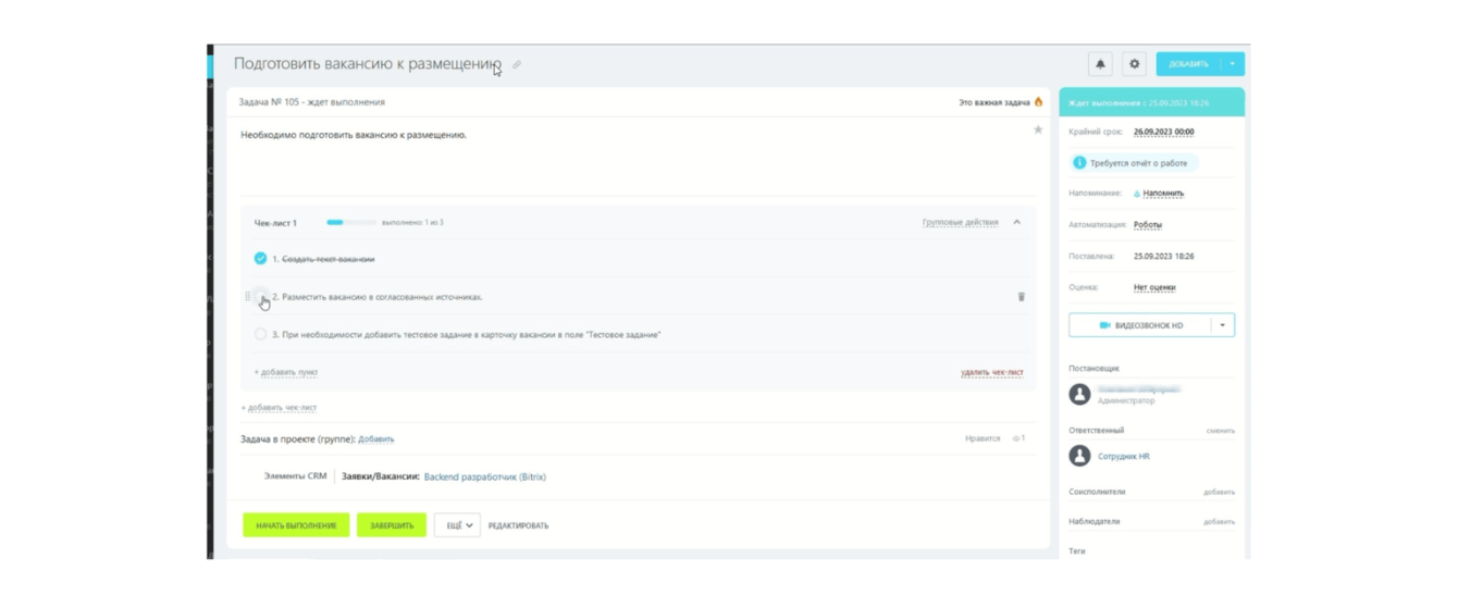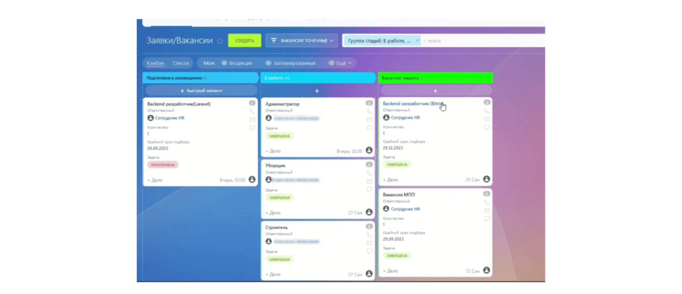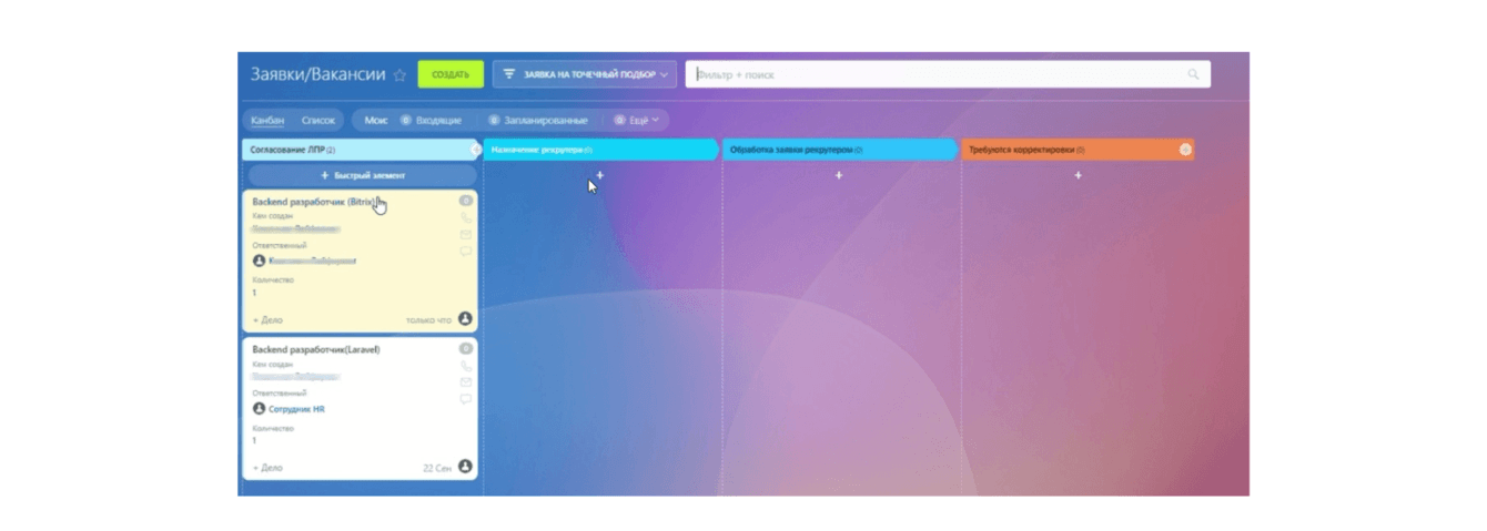 2) Автоматизация подбора персонала в Битрикс24 (БП)