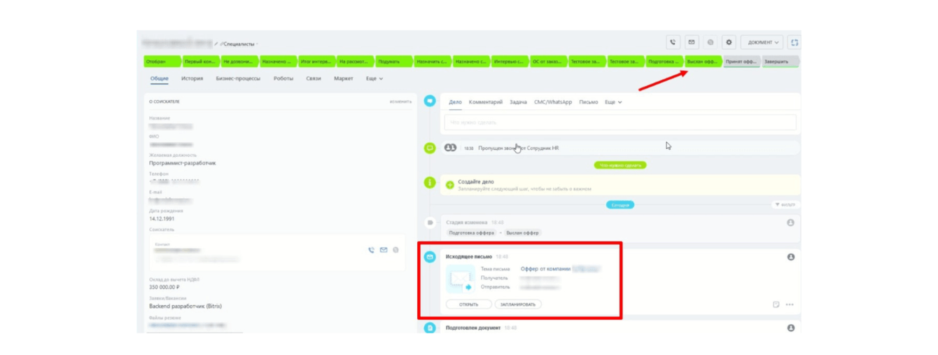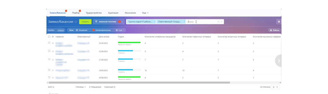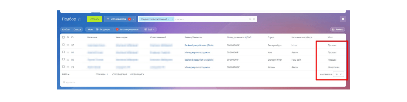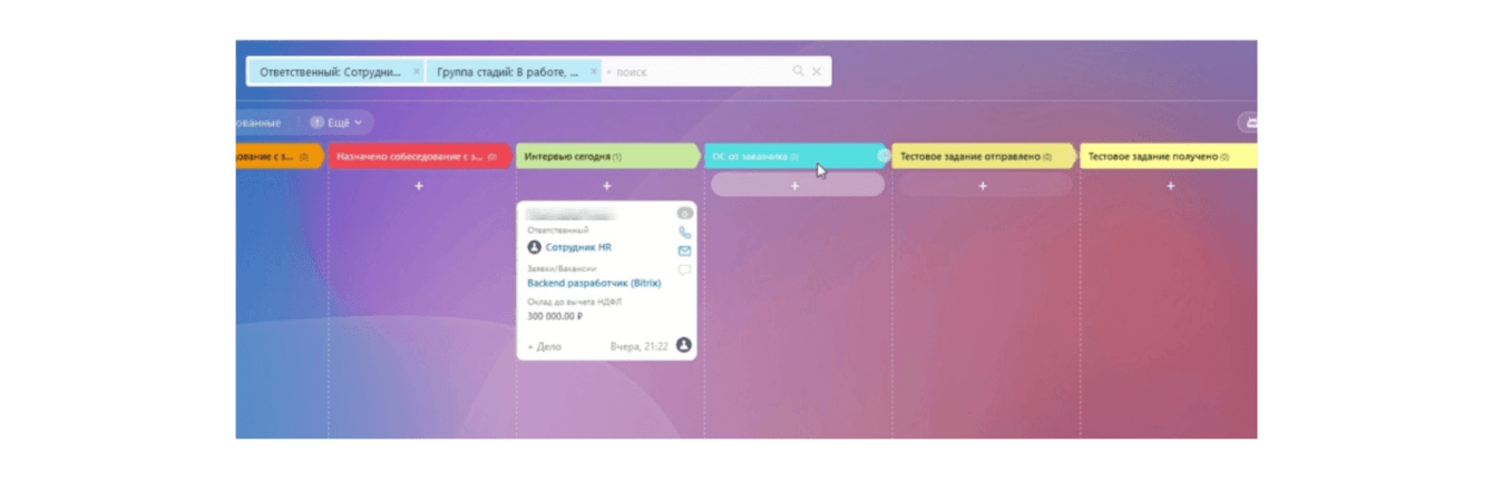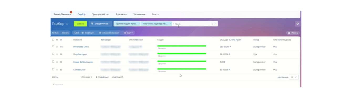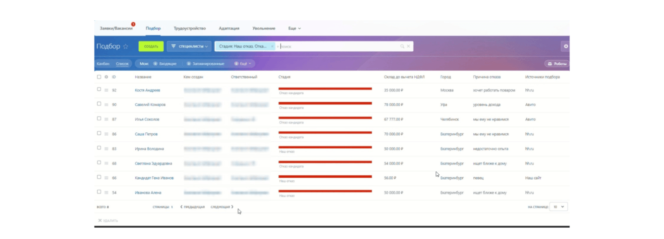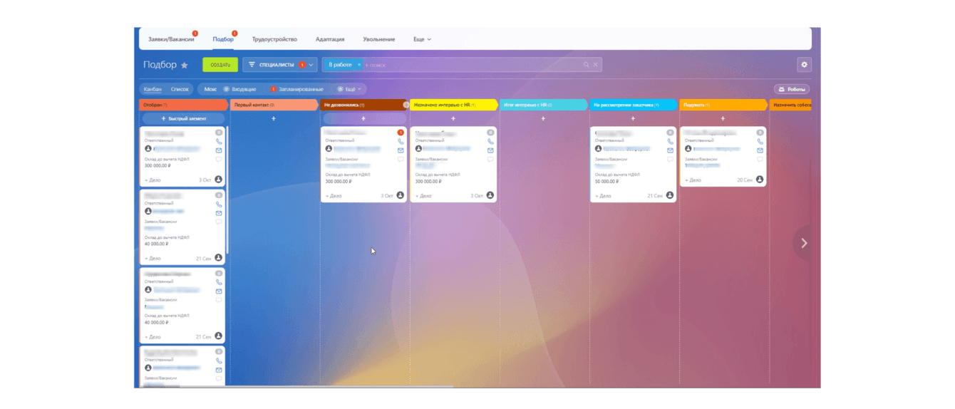 В системе мы реализовали все этапы подбора, которые имеются в компании.