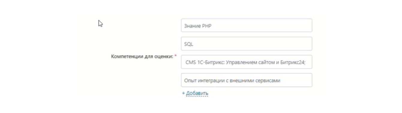 Мы реализовали возможность выбора ключевых компетенций, по которым и будет происходить оценка всех кандидатов по конкретной вакансии.