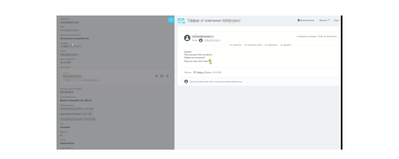 Реализовали автоматический перенос данных из резюме с hh.ru в карточку соискателя