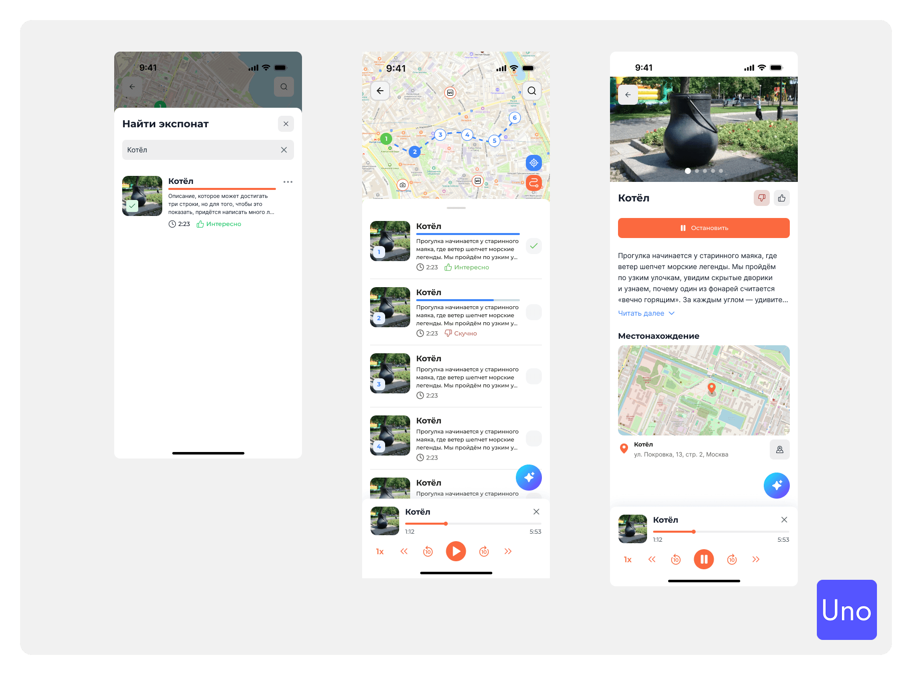 Мобильное PWA-приложение, которое позволяет туристам слушать экскурсии как в онлайн, так и в офлайн режиме, без установки на телефон и без регистрации.
