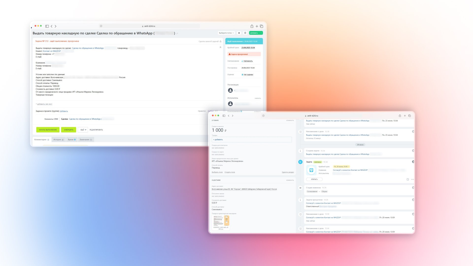 · Поставить задачи для всех сотрудников, включая логистику и склад, и контролировать их выполнение;