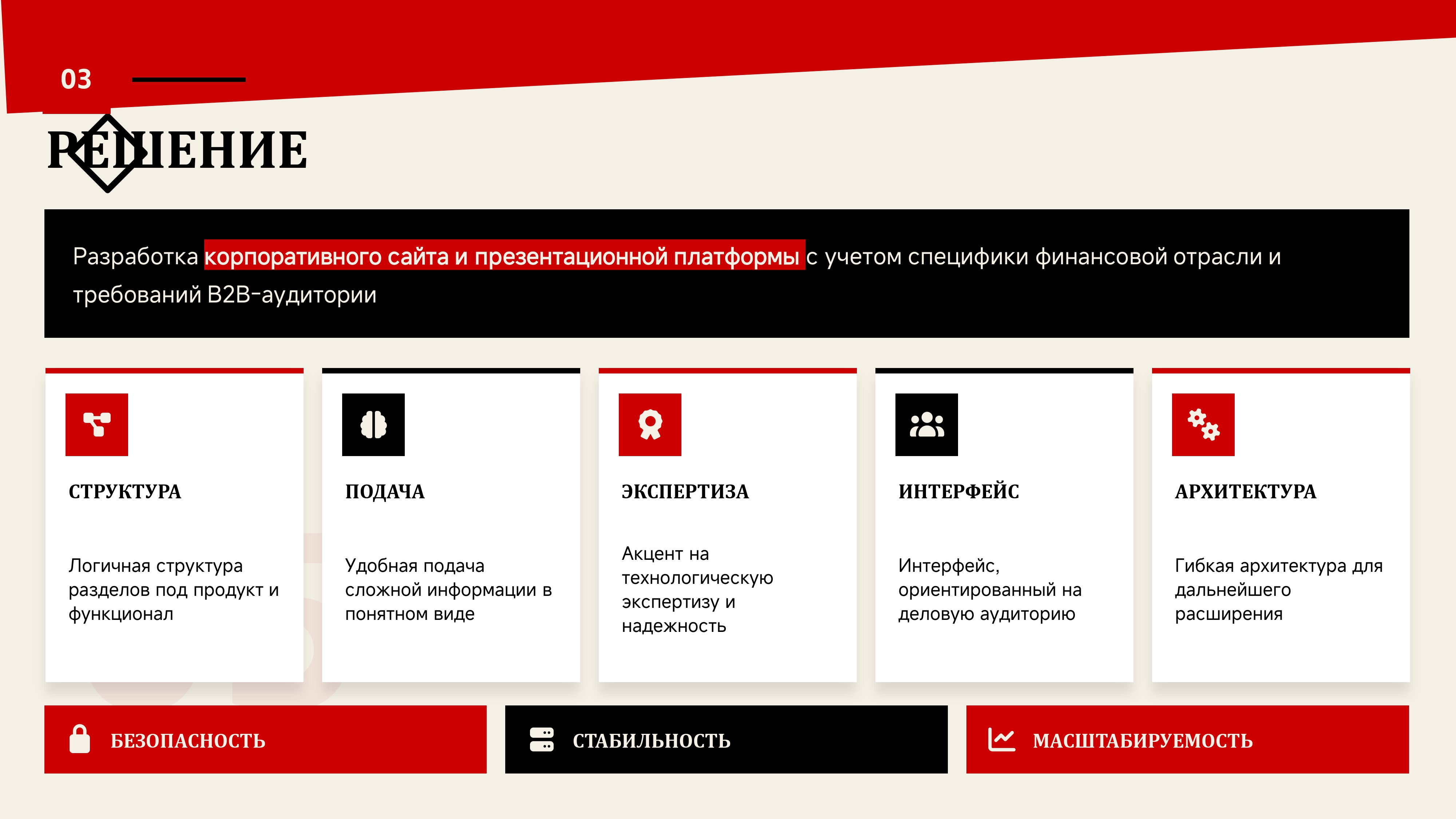 Мы разработали корпоративный сайт и презентационную платформу с учетом специфики финансовой отрасли и требований B2B-аудитории.