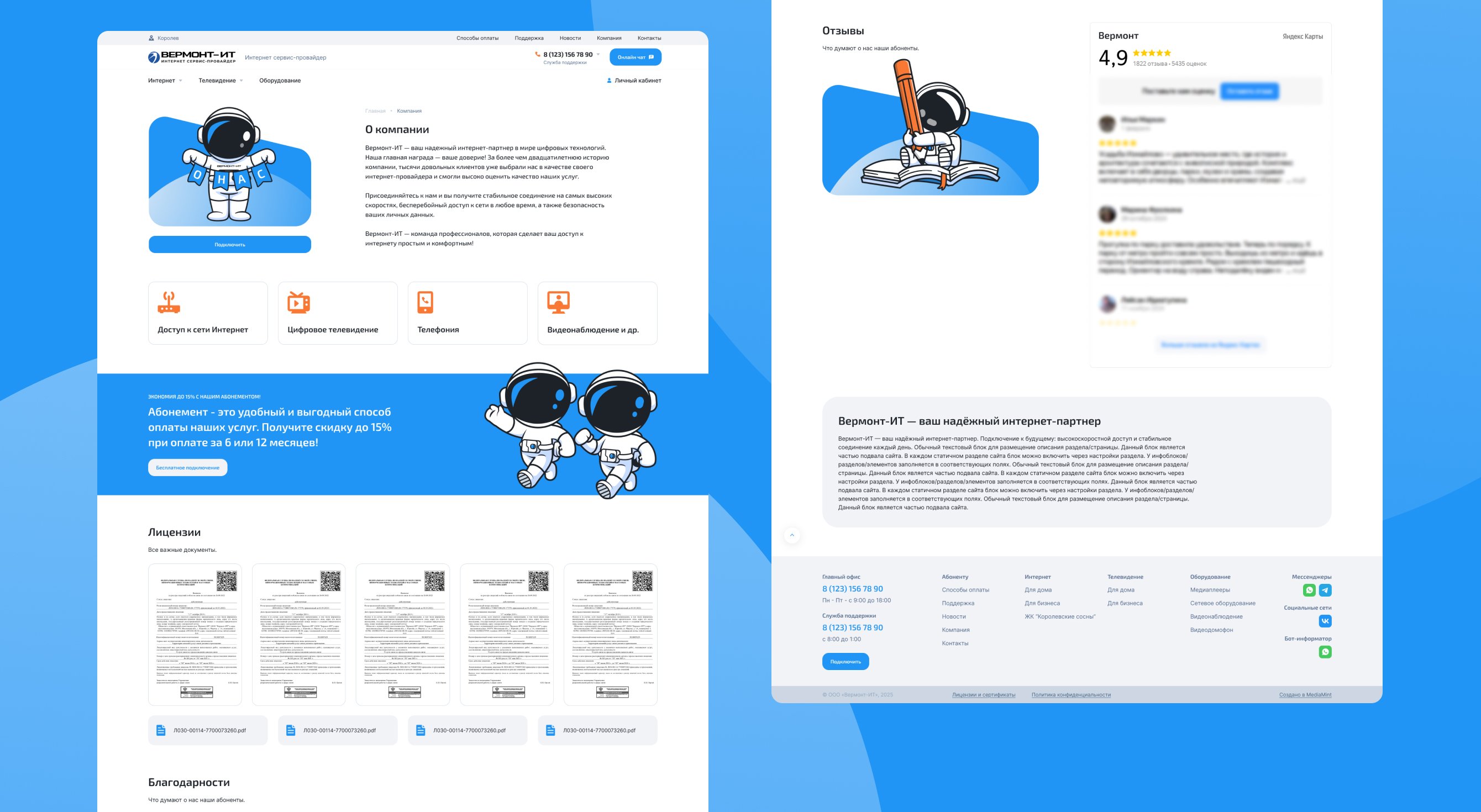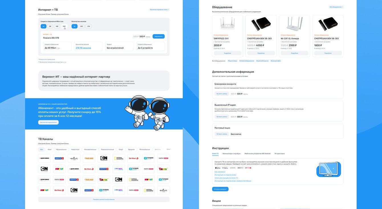 «Вермонт-ИТ» - это стабильный и надёжный оператор связи с опытом более 20 лет. Компания ориентирована на всех: от обычных пользователей, которые хотят быстрый интернет, до бизнеса и B2G-сегмента.