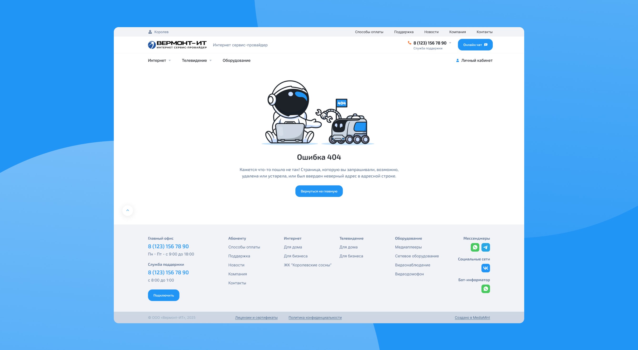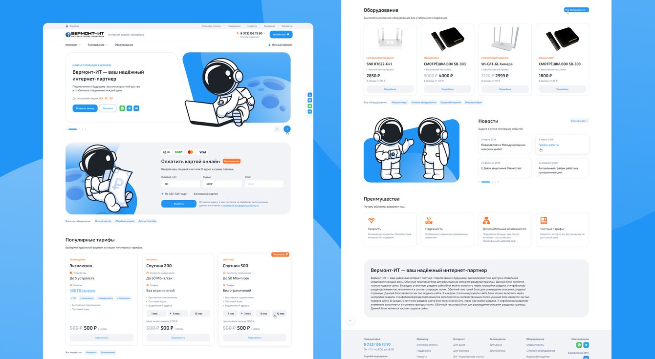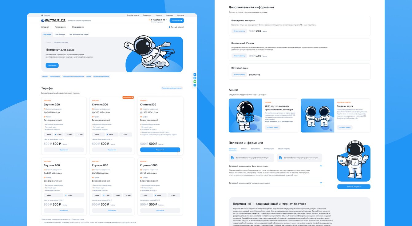 Мобильная версия: адаптивная и удобная, чтобы клиент мог подключиться и оплатить услуги прямо со смартфона.