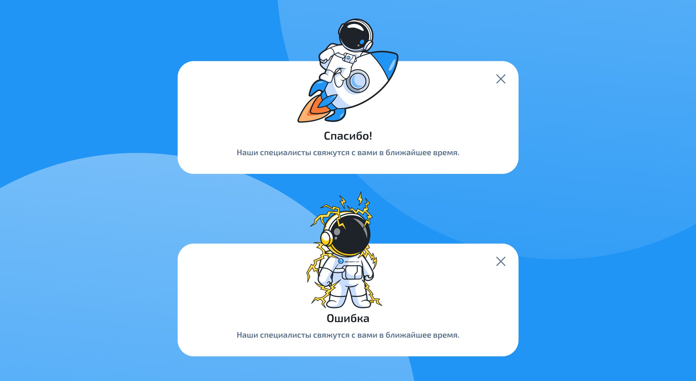 Дизайн: минимализм, плоские закругленные элементы, цвета бренда (голубой, синий, белый) - всё, чтобы пользователь видел статус и надёжность компании.