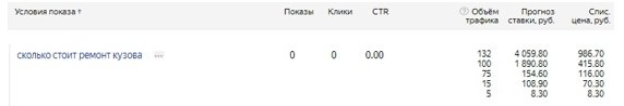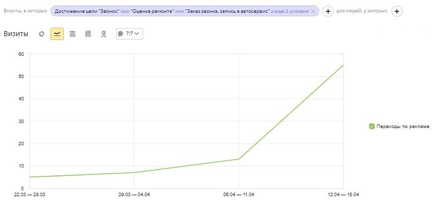 Клиент настаивал на точечном геотаргетинге на поиске. По его мнению, в сервис должны были обратиться только те, кто находится поблизости в момент поиска. Однако ниша и так достаточно конкурентная. Сужая зону показов до определенного радиуса, мы продолжали конкурировать со всеми рекламодателями автосервисов, таргетированных на всю Москву. А так как активного спроса в заданном радиусе меньше, чем по всей Москве, ставки были очень высоки, а объем трафика был низкий в рамках обговоренного бюджета. Следовательно, мы получали малую долю показов, переходов и обращений, цена клика была высокой.