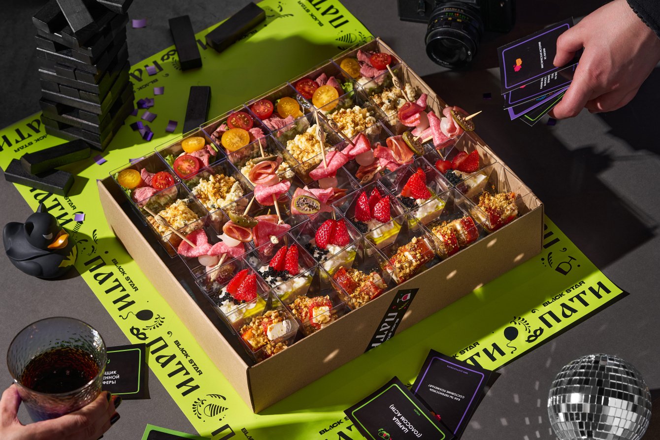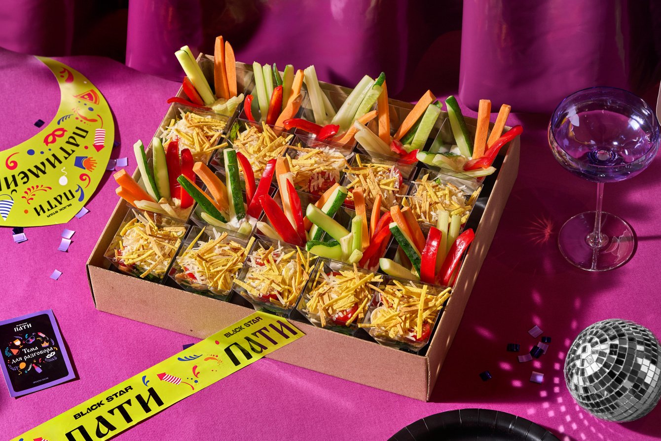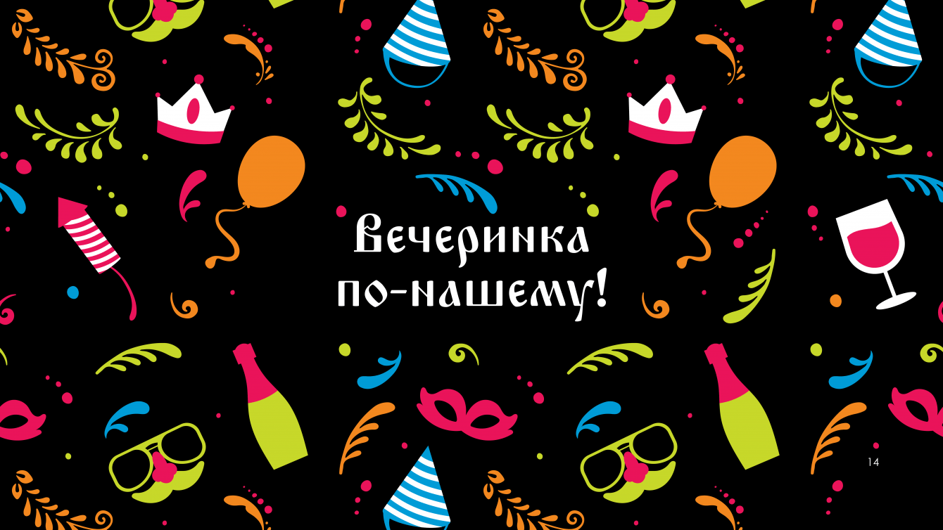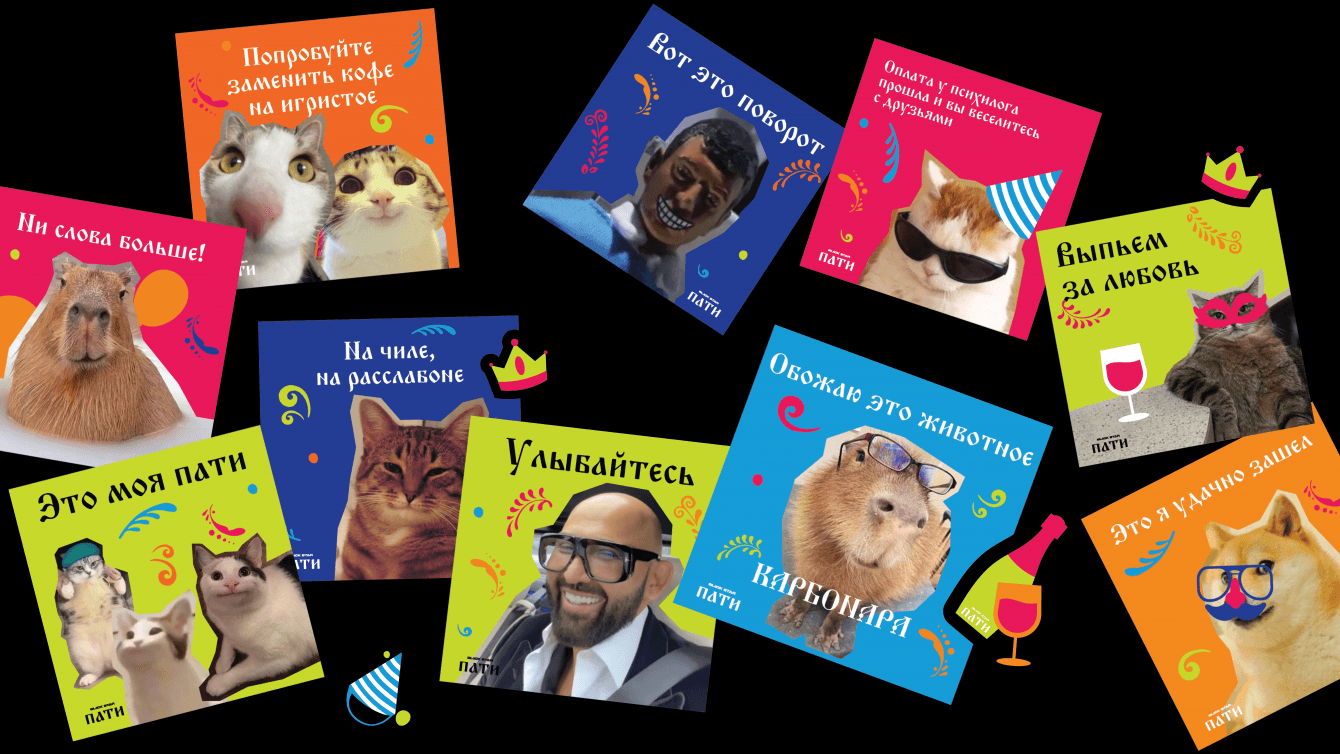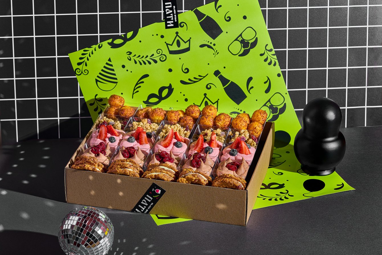 Клиент обратился с запросом на создание яркой и трендовой айдентики для кейтеринга вечеринок. Вдохновлённая неорусским стилем, она должна была передавать праздничную атмосферу веселья и лёгкости, но без стереотипных визуальных элементов.
