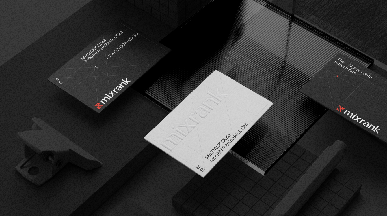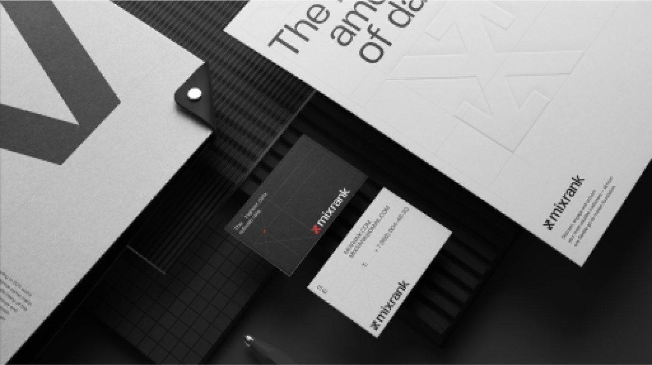 — Для знака логотипа мы придумали динамичное соединение наклонной линии и стрелки как атрибута работы с информацией. Кроме того, знак образует букву «Х», которую можно интегрировать в текстовую версию логотипа MixRank.