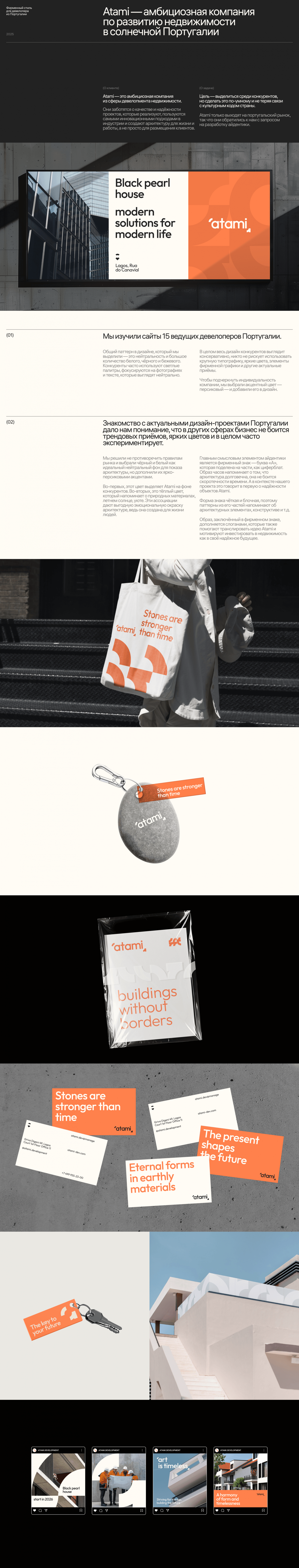 Мы разработали визуальную систему, которая отражает философию Atami — сочетание надежности, инноваций и внимания к деталям. Лаконичная, но выразительная айдентика помогает бренду уверенно выходить на португальский рынок и сразу заявлять о себе как о компании, которая строит будущее.