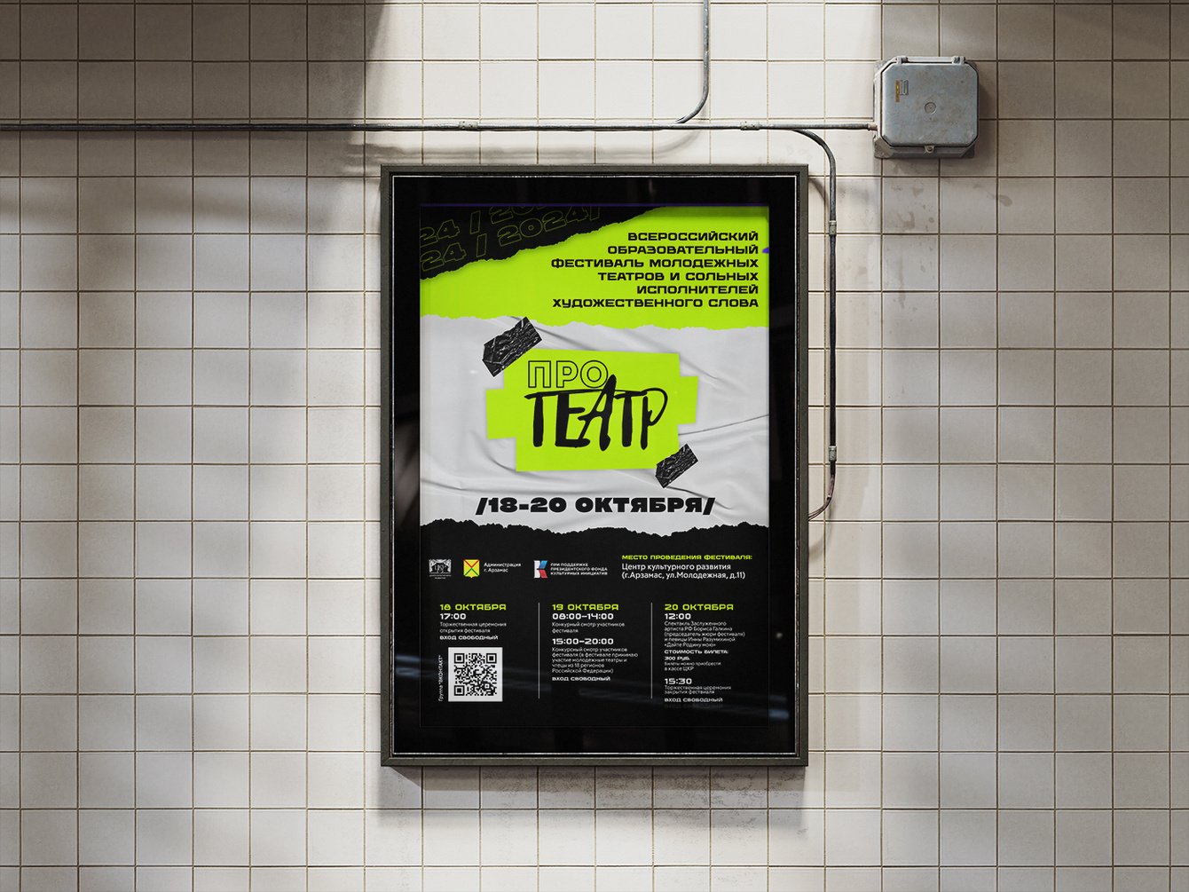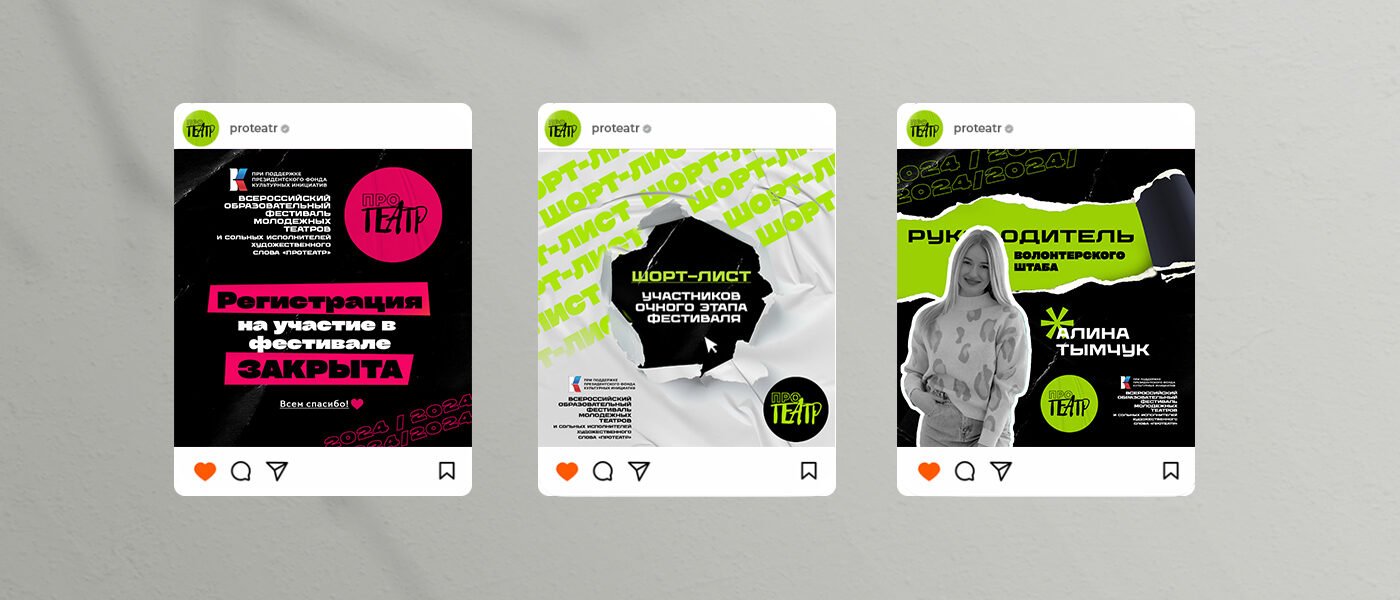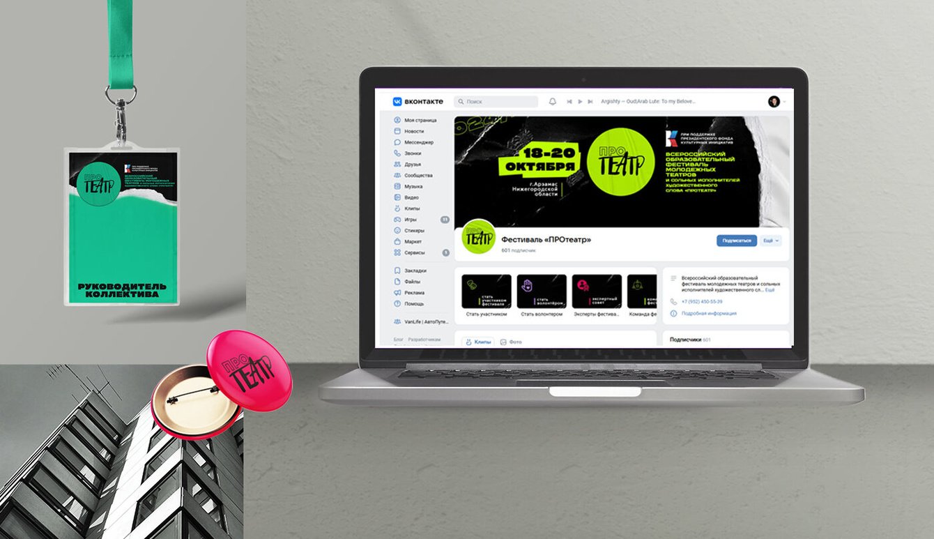 Ежегодный фестиваль молодежный фестиваль "Протеатр" который проходит в городе Арзамас. К уже существующему логотипу разработать айдентику, общую стилистику и полное дизайн сопровождение, а так же мерч. Основная задача подчеркнуть молодежность и артхаусность фестиваля, ведь участники в нем тинейджеры из разных городов России