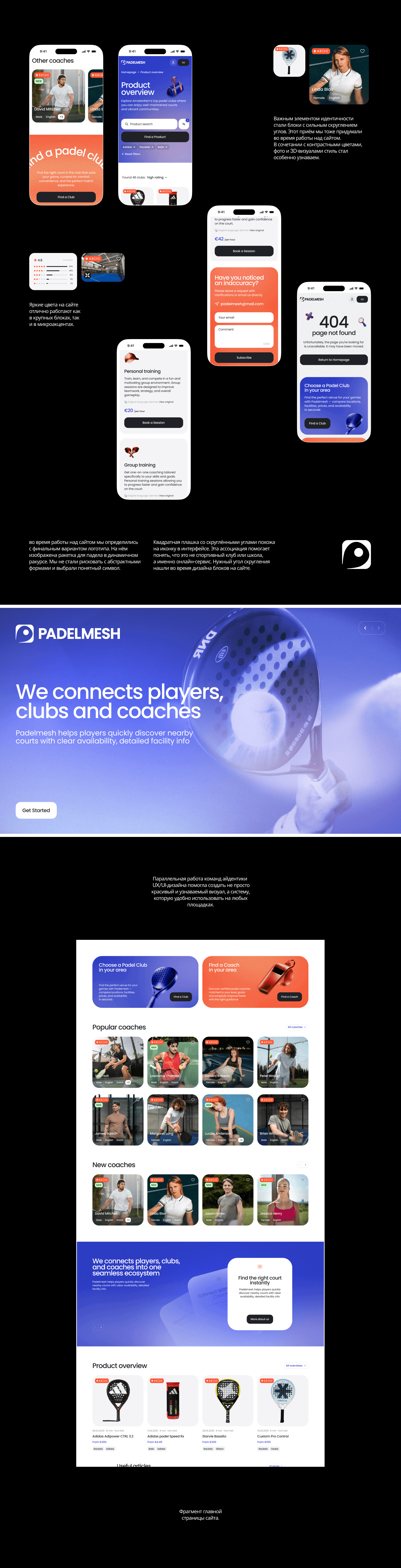 Благодаря сильной продуктовой экспертизе клиента и внутренней аналитике команды Padelmesh мы легко прошли через все этапы дизайна.