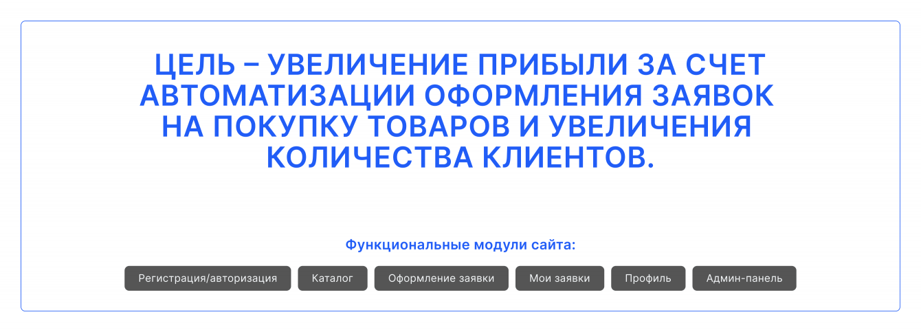 Разработка системы для автоматизации оформления заявок на покупку товаров, что обеспечит увеличение количества клиентов и рост прибыли.