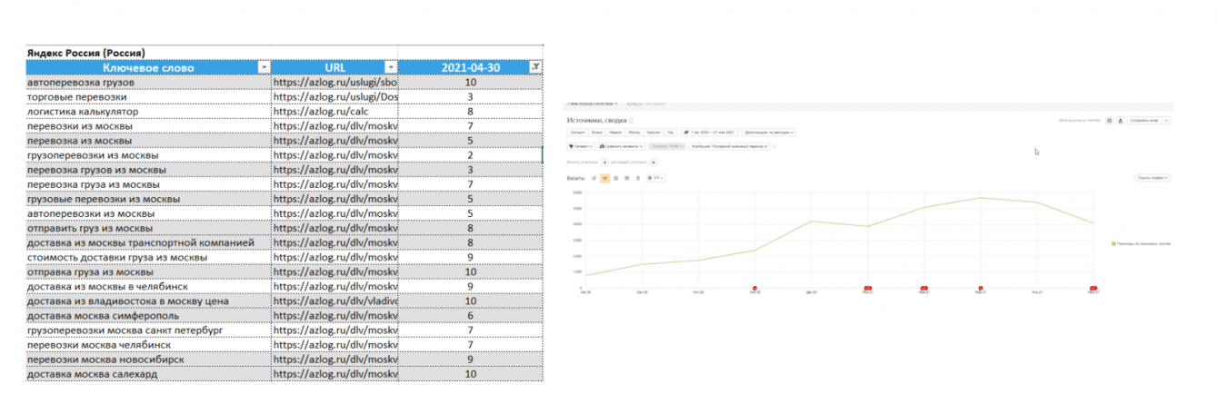 Сайт идет вверх по позициям и выходит в топ по запросам. Ежемесячно увеличивается количество позиций в топ 3 на 8-15 позиций, +250-350 позиция в топ 10, -200-250 позиций в топ 30. Так же ежемесячно увеличивается трафик в среднем на 30%, через полгода уже более 4000 посетителей в месяц, 205 позиций в ТОП-10, среди них 2 позиции в ТОП-1 (7 месяцев работ)