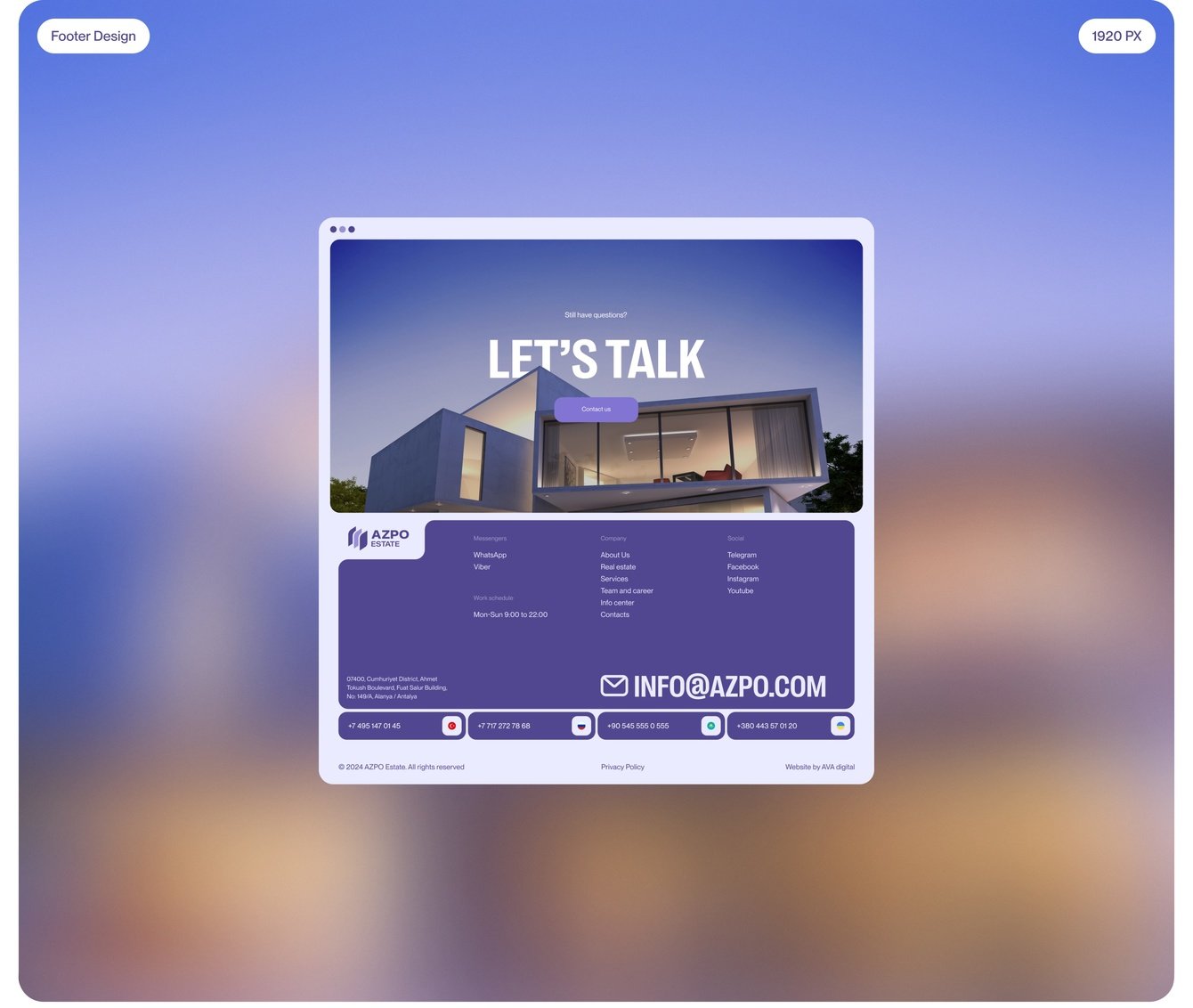 Ребрендинг для AZPO ESTATE. Компания-агрегатор, которая занимается недвижимостью. Ребята предоставляют всеобъемлющий сервис для своих клиентов на территории Турции уже 20 лет.