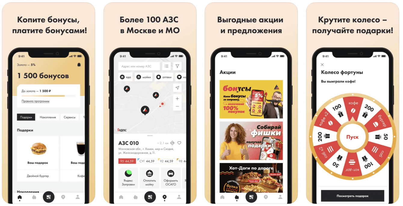 - накапливать бонусы за заправку и оплачивать бонусами покупки в кафе и магазинах на АЗС;