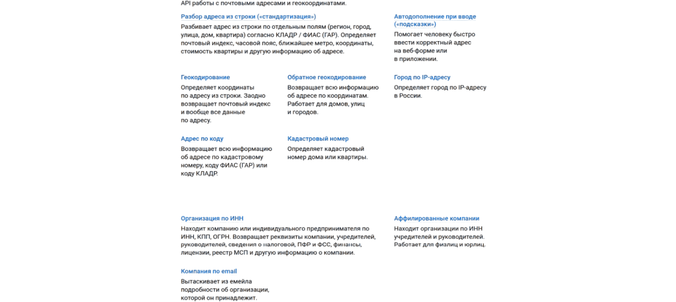 Также используются точечные решения: DaData для проверки валидности адреса грузополучателя, проверка ИНН через nalog.ru и другие.