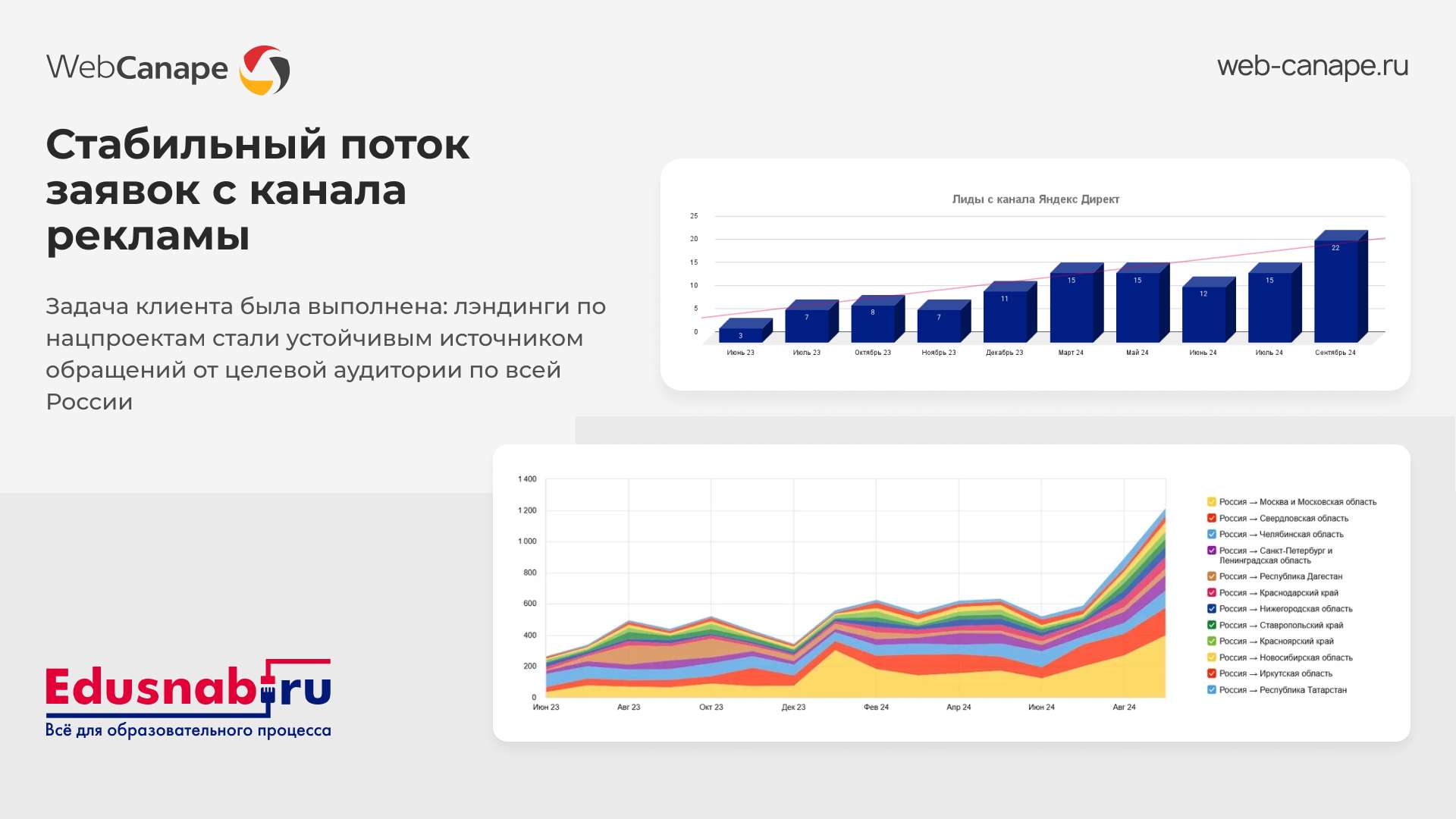 - Лендинги по нацпроектам стали устойчивым источником обращений от целевой аудитории по всей России.