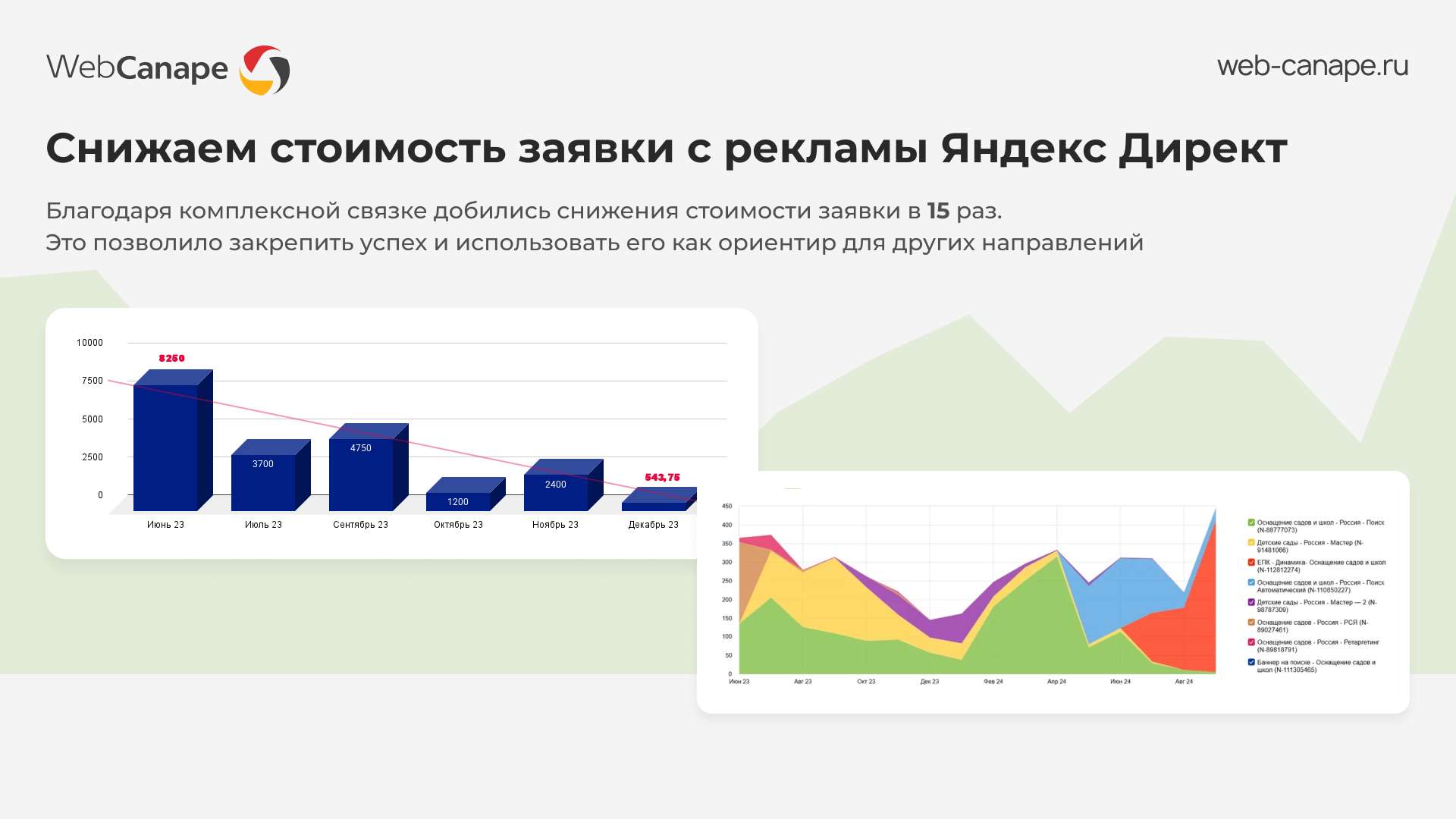 Как итог — увеличение количества месячных заявок в 7 раз и снижение их стоимости в 4 раза.
