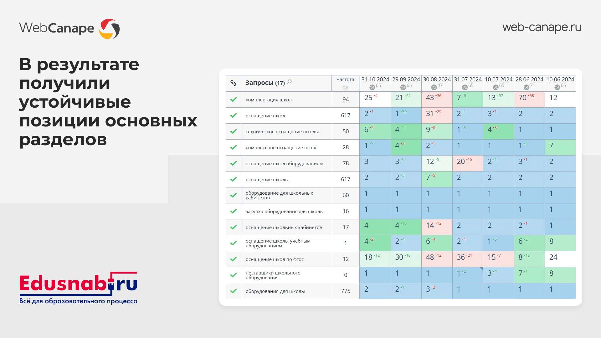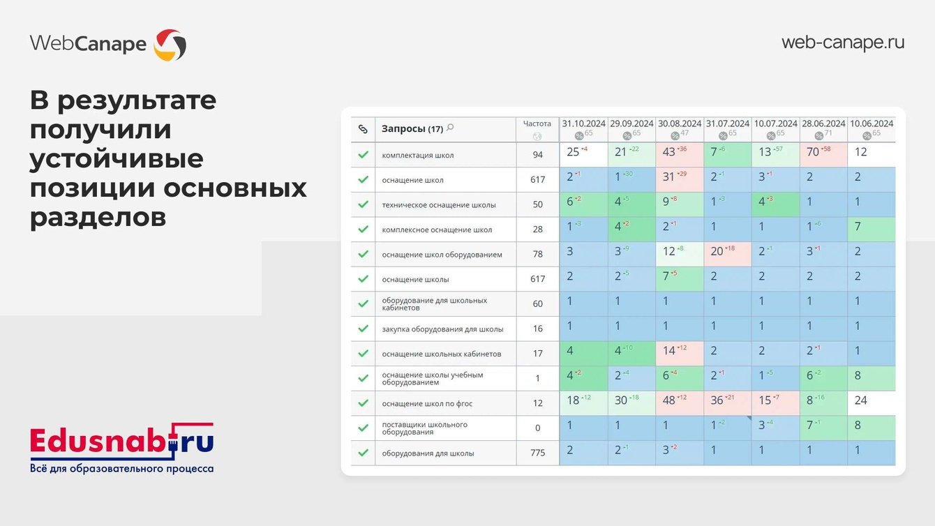 Мы не просто повысили видимость Edusnab в поисковых системах, а сделали сайт стабильным источником лидов.