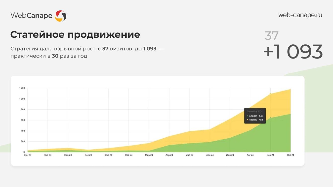 Стратегия дала взрывной рост: с 37 визитов в сентябре 2023 до 1 093 в сентябре 2024 — практически в 30 раз.