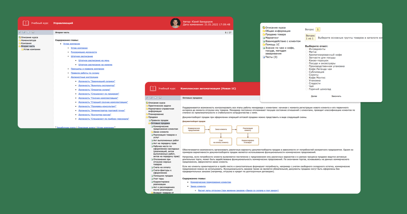 Начали с должностных инструкций логиста и бухгалтера. Для этих позиций в базе данных описали, какие документы выставлять, как их проводить и отправлять, как взаимодействовать с клиентом, как производить расчёт логистики, отправку товара и так далее. В системе отобразили все важные нюансы, приложили скриншоты и пояснения, добавили тестирование. Ранее эти процессы каждому новичку приходилось показывать лично и повторять не один раз, чтобы знания закрепились. Теперь сотрудники справляются с обучением самостоятельно.