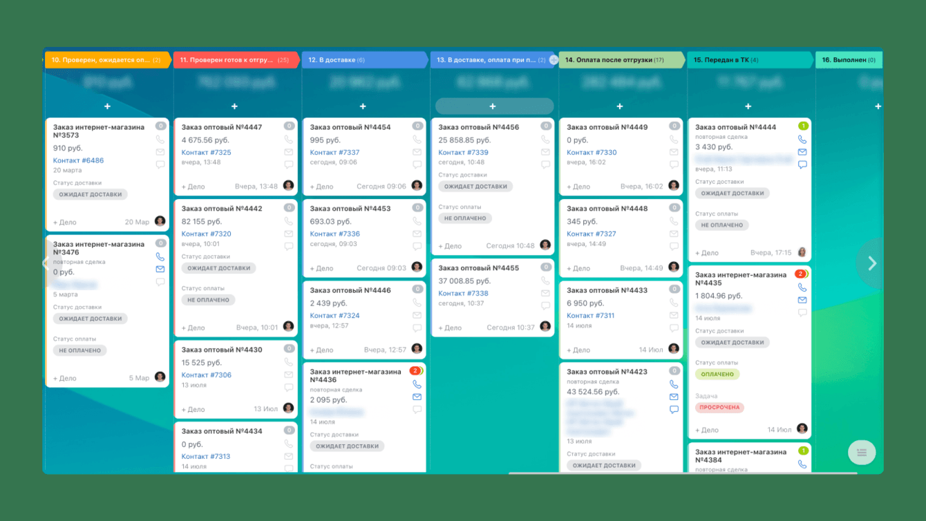 В CRM-системе компании «Легенда чая» мы оцифровали несколько важных процессов и настроили их в виде воронок, а именно: