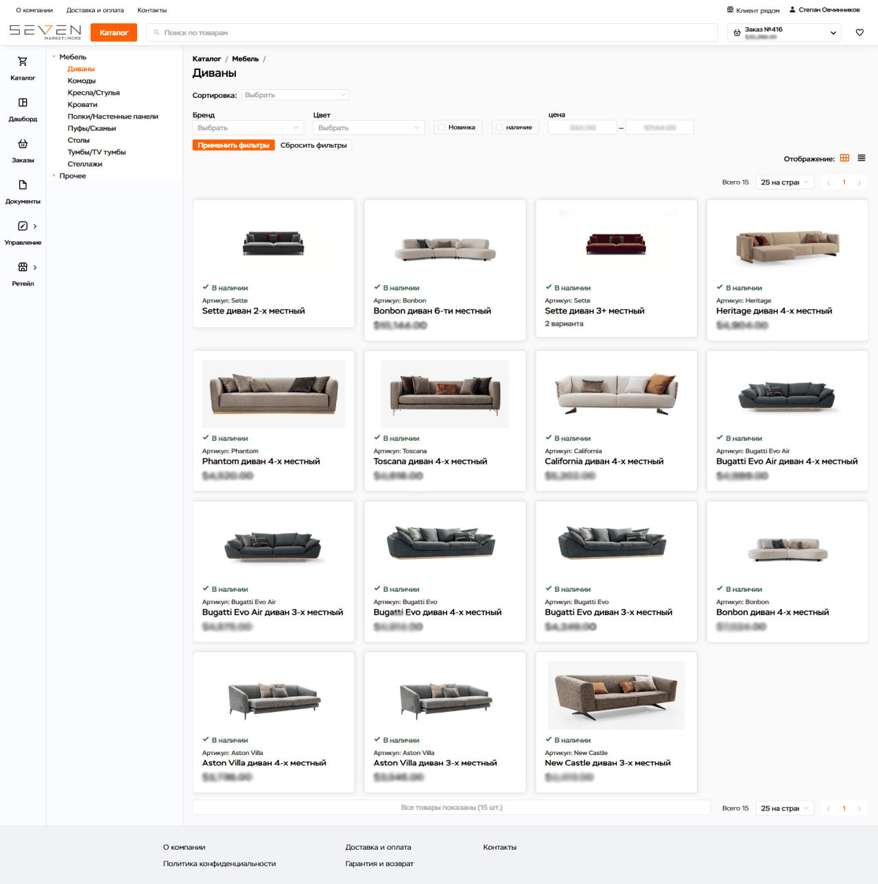 Клиент: Компания SEVEN MARKET — крупный поставщик мебели для оптовых клиентов.