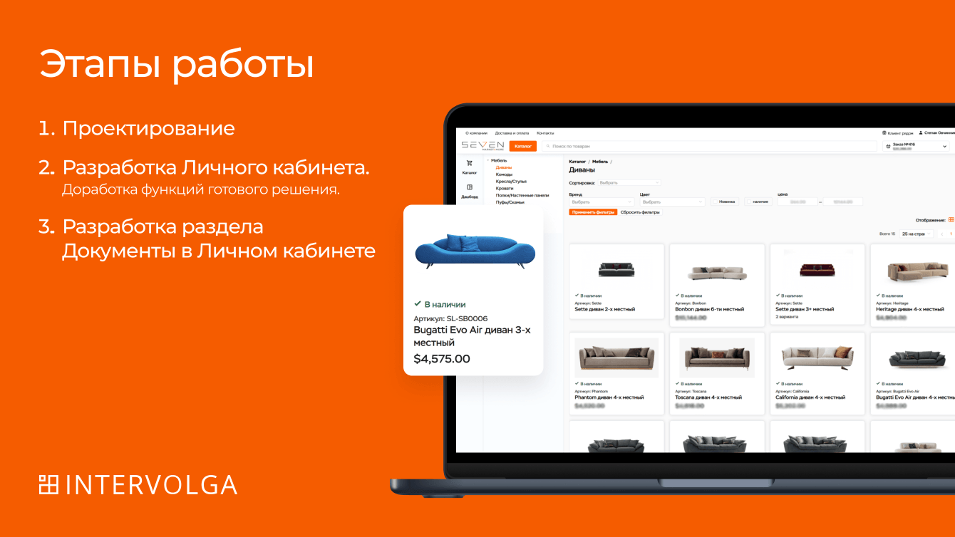 Причина обращения: У компании большое количество B2B-покупателей (мебельные салоны, интернет-магазины). Раньше вся работа строилась оффлайн — клиенты запрашивали прайсы с актуальными (ценами и наличием) у менеджеров. Далее после длительных коммуникаций оформлялся заказ. Это мешало финансовому росту компании.