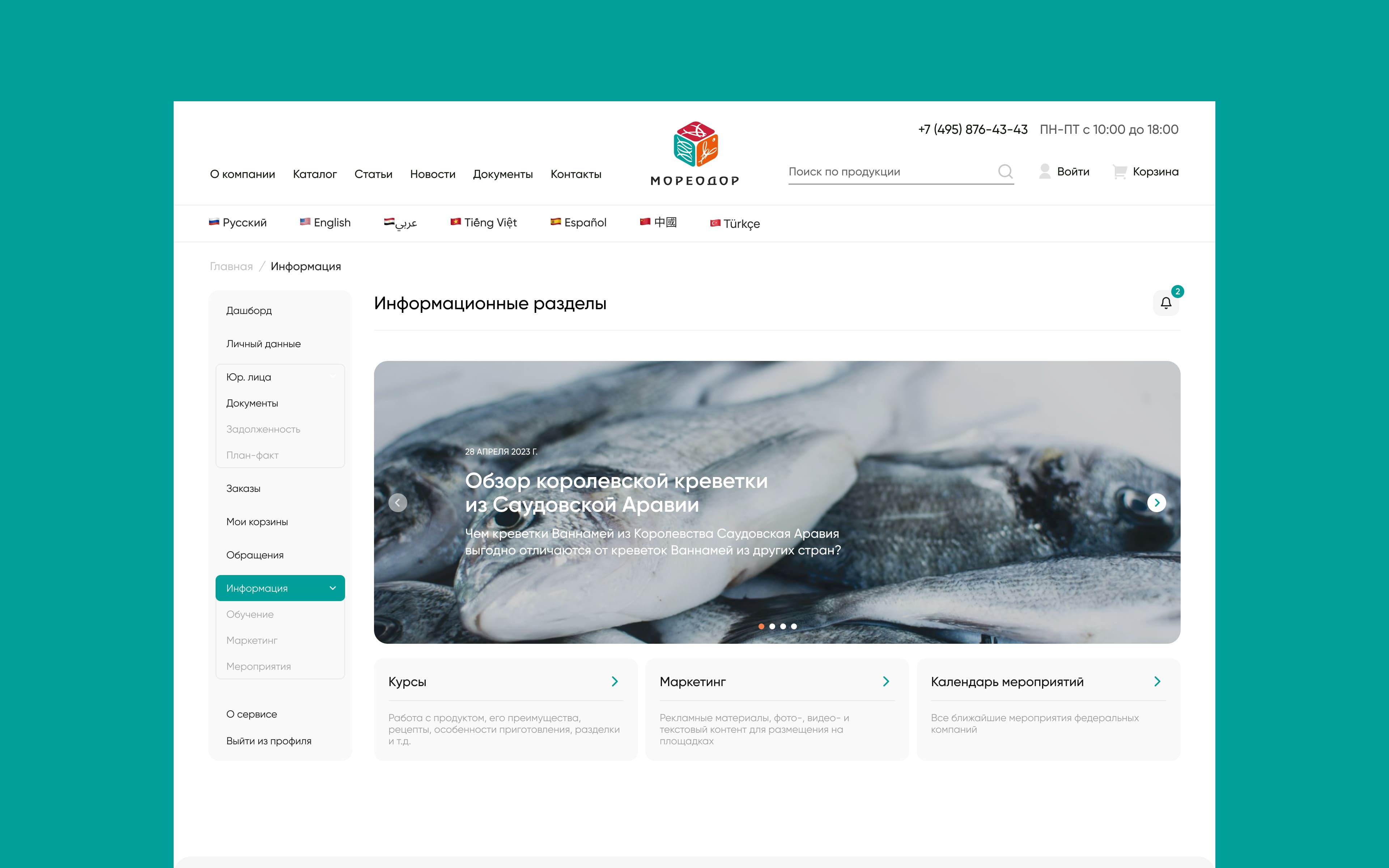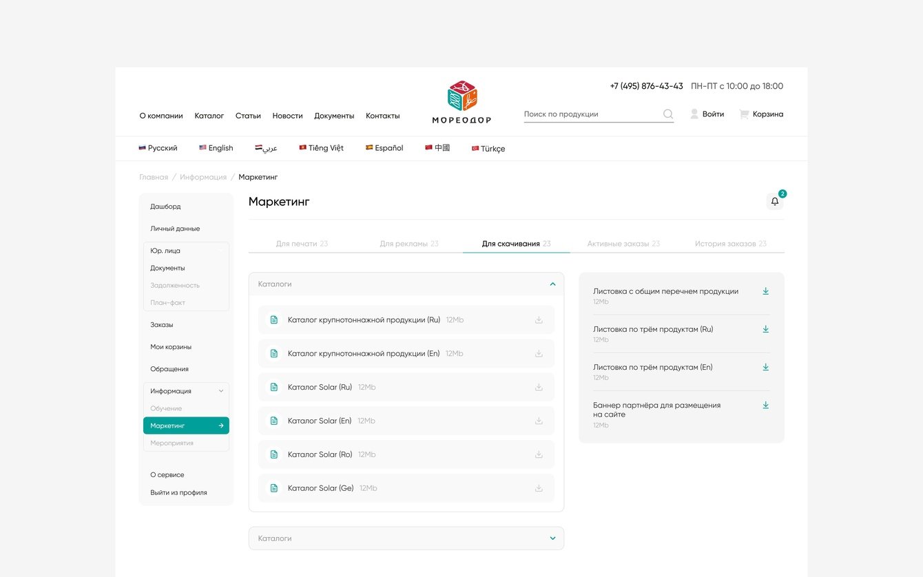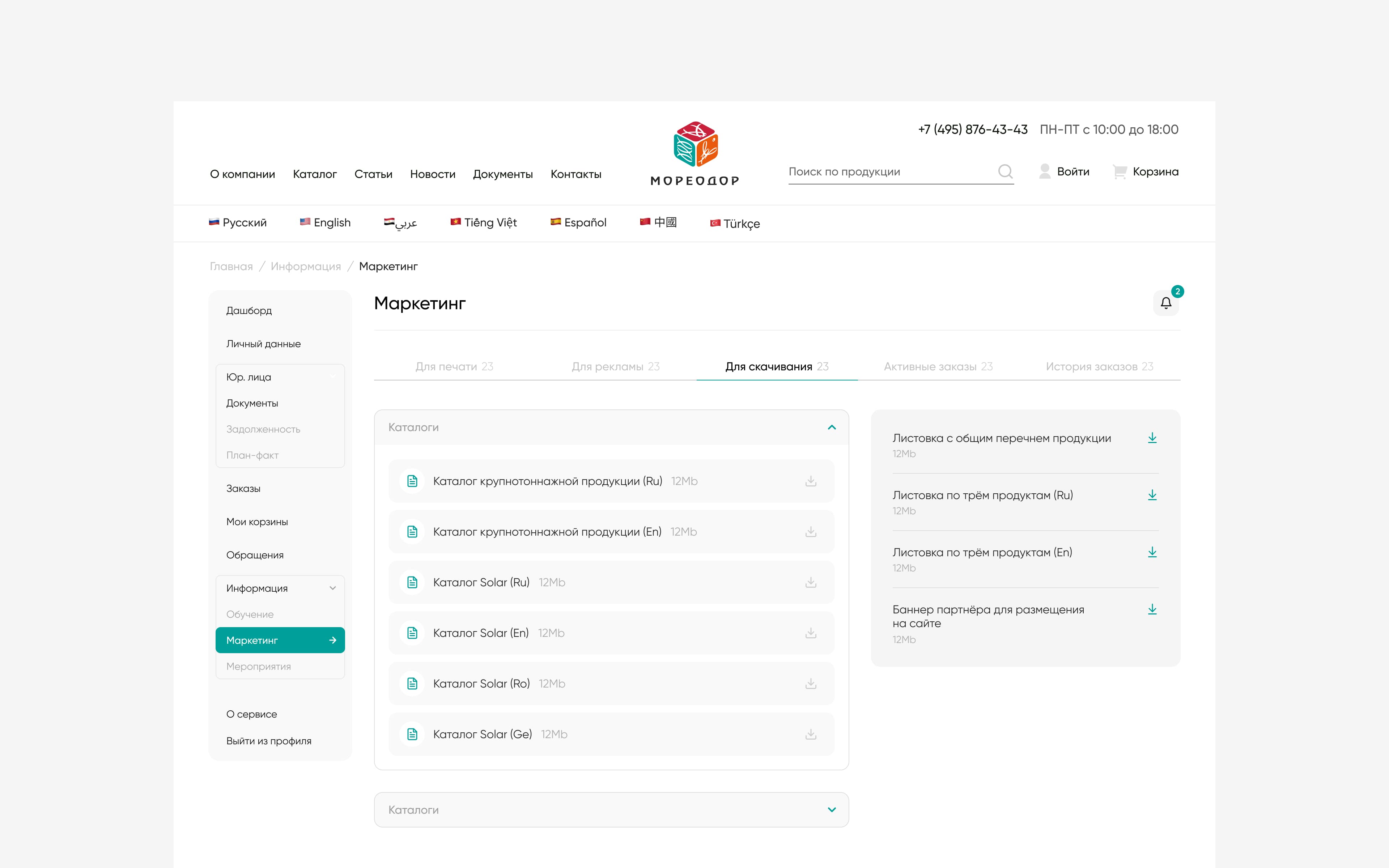 Мы добавили разделы для настройки акций, управления рекламным контентом, обучения контрагентов и планирования мероприятий. Для повышения квалификации клиентов создан обучающий раздел с курсами и материалами.