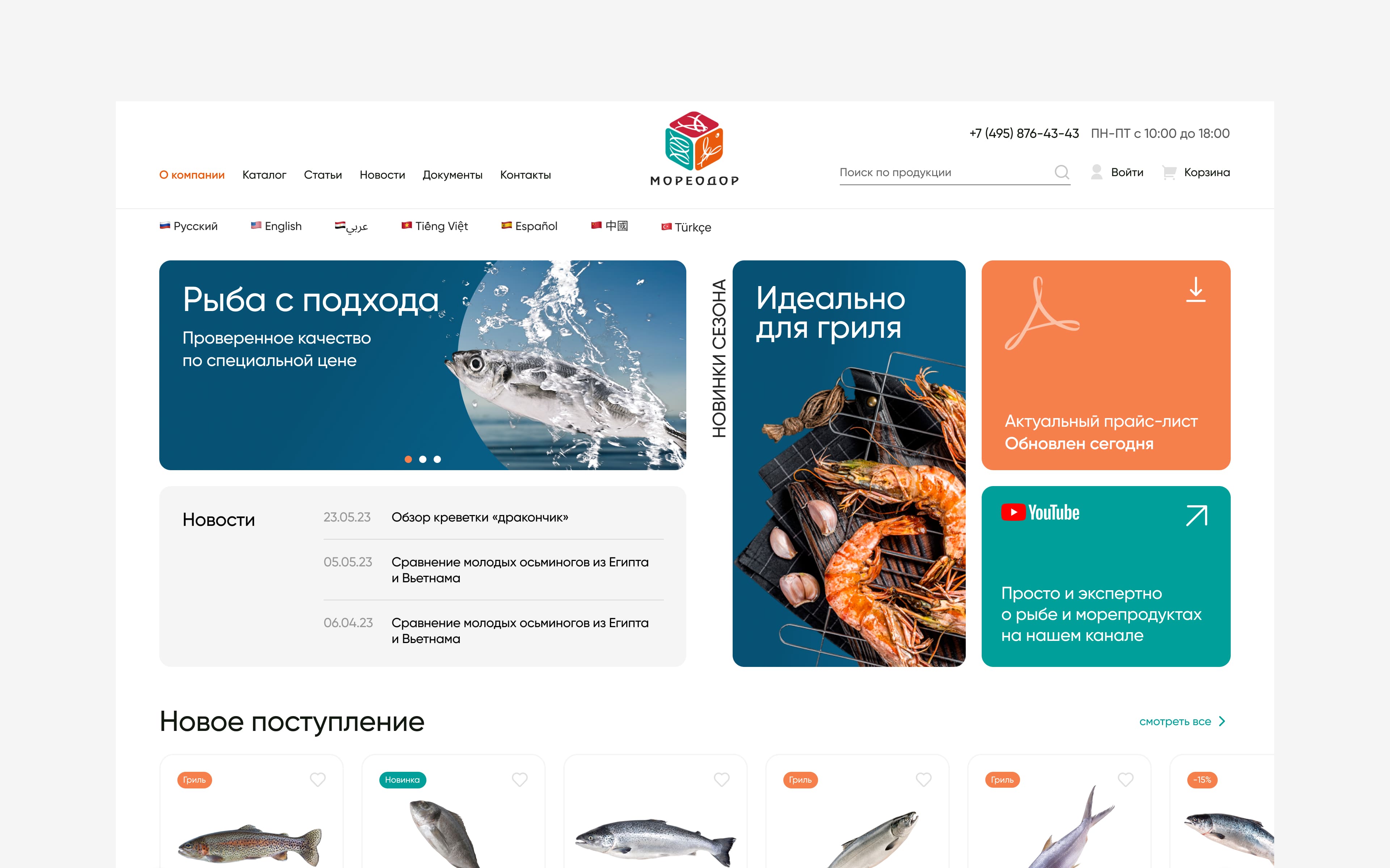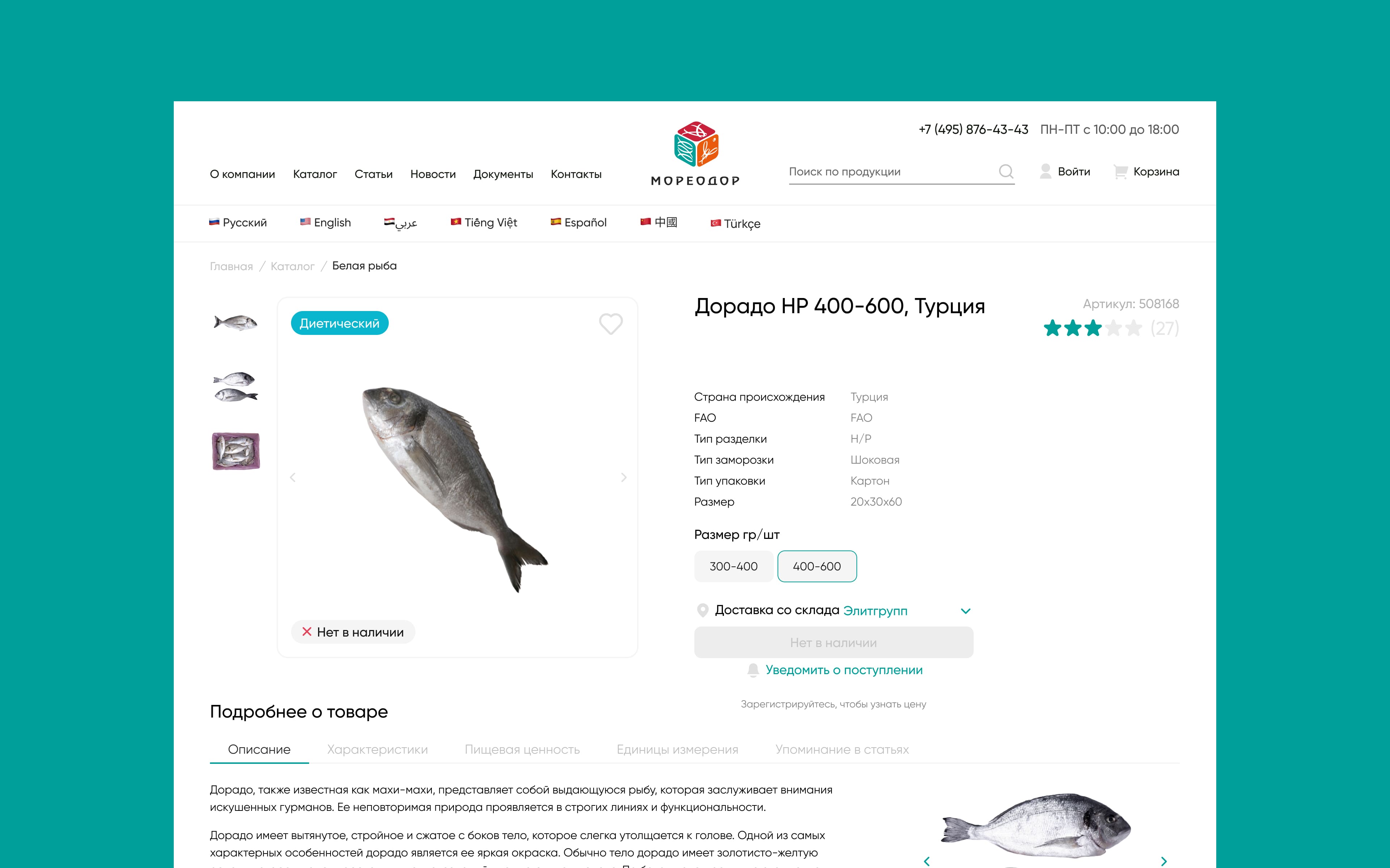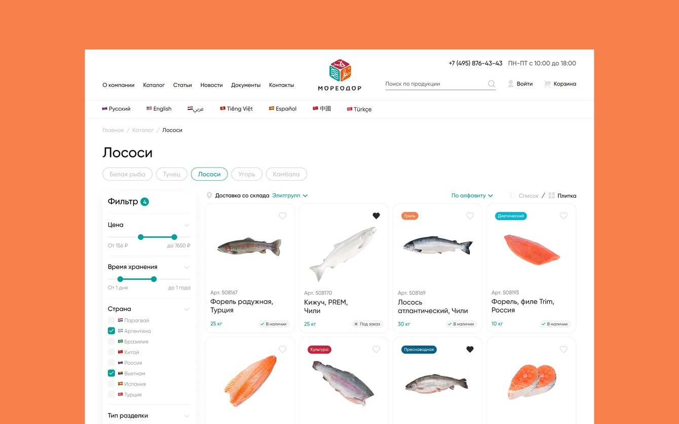 Мы спроектировали удобную навигацию и создали каталог с товарами в наличии и под заказ, добавили фильтры и сортировку. В карточках товаров предусмотрели ключевую информацию: технические характеристики, фотографии, рейтинги, блок рекомендованных товаров и справочник единиц измерения.