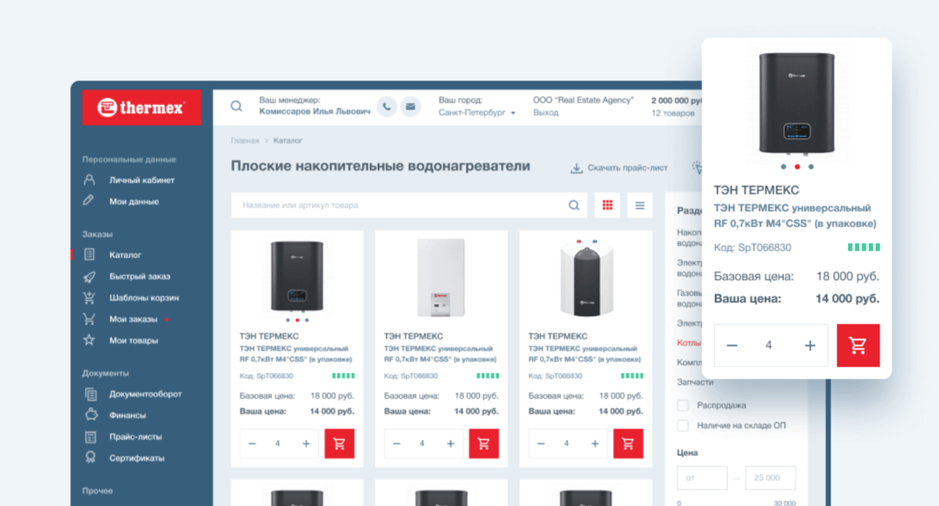 B2B-портал для клиентов ООО «Термекс» запущен в полном объеме. Сегодня большая часть покупателей работают с помощью сервиса. Благодаря инструментам самообслуживания скорость обработки заказов увеличилась. Это позволяет менеджерам сократить временные затраты на одного клиента и провести больше заявок.