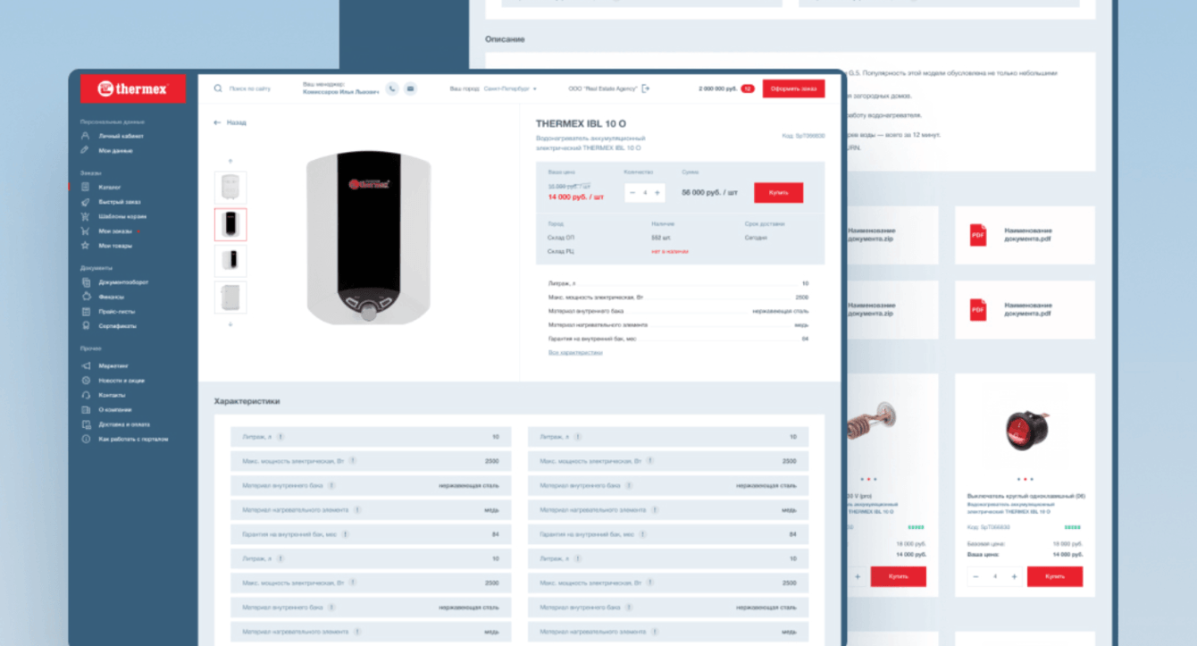 B2B-портал для клиентов ООО «Термекс» запущен в полном объеме. Сегодня большая часть покупателей работают с помощью сервиса. Благодаря инструментам самообслуживания скорость обработки заказов увеличилась. Это позволяет менеджерам сократить временные затраты на одного клиента и провести больше заявок.