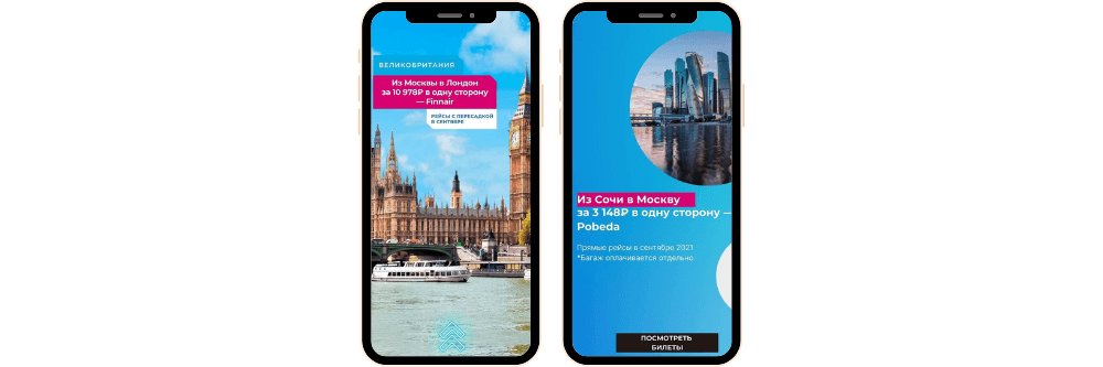 Серия сторис с подборкой билетов по актуальным направлениям: